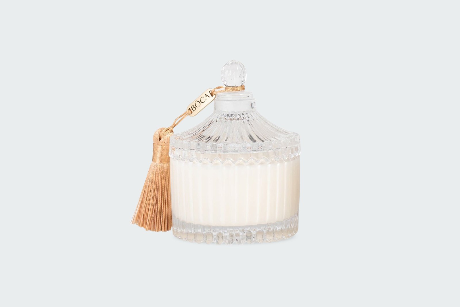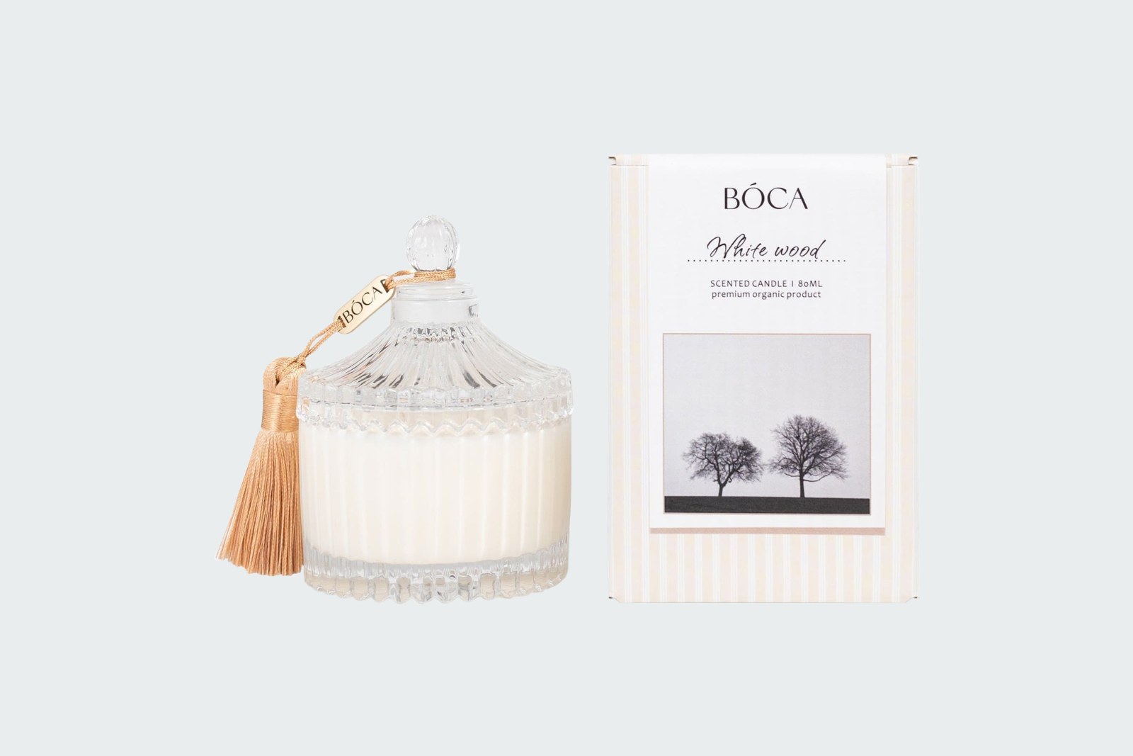 Ароматическая свеча White Wood, помещенная в оригинальную форму граненого стекла, при горении создает уникальное преломление света и игру теней, наполняя помещение атмосферой покоя и комфорта.
