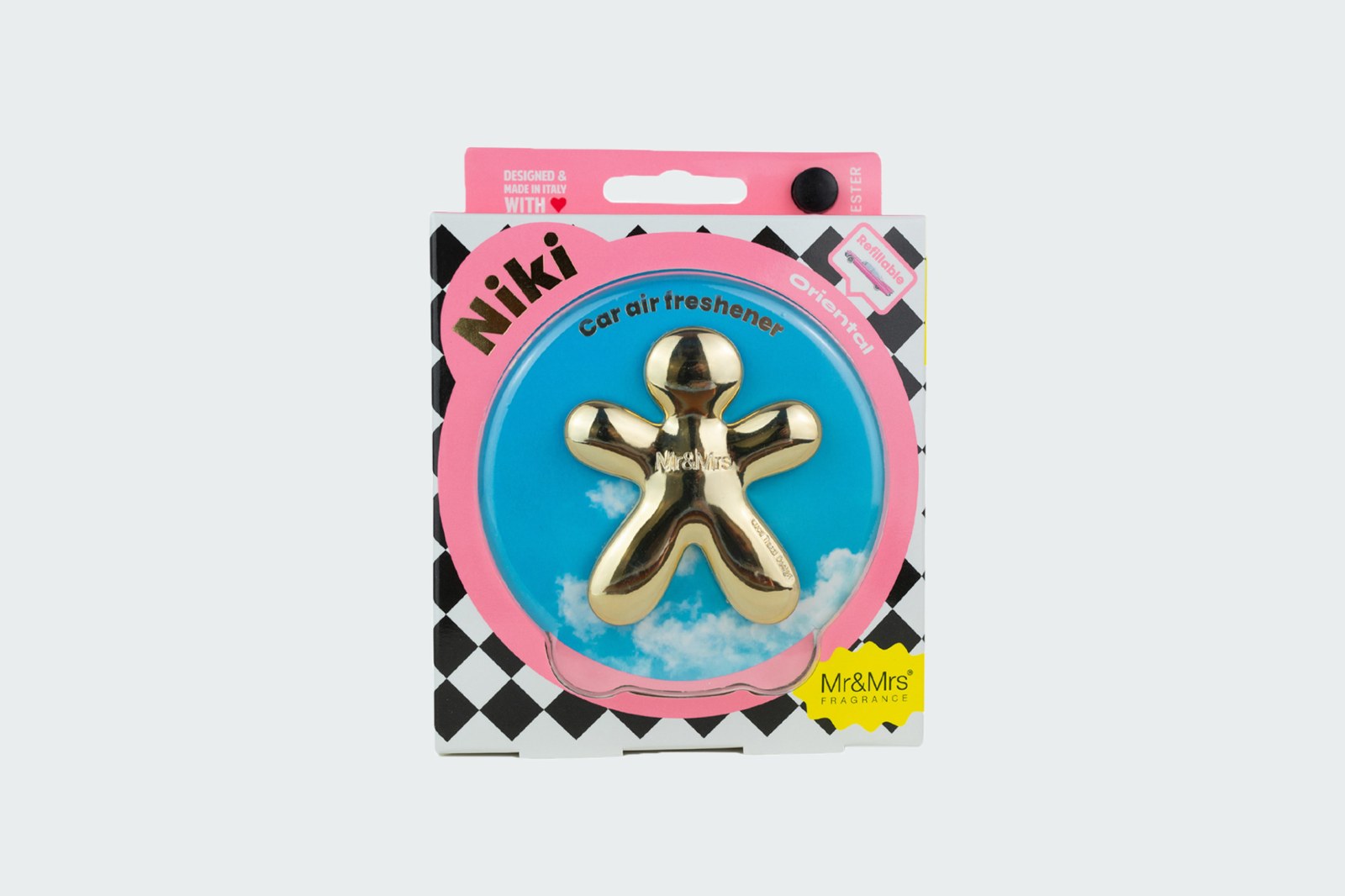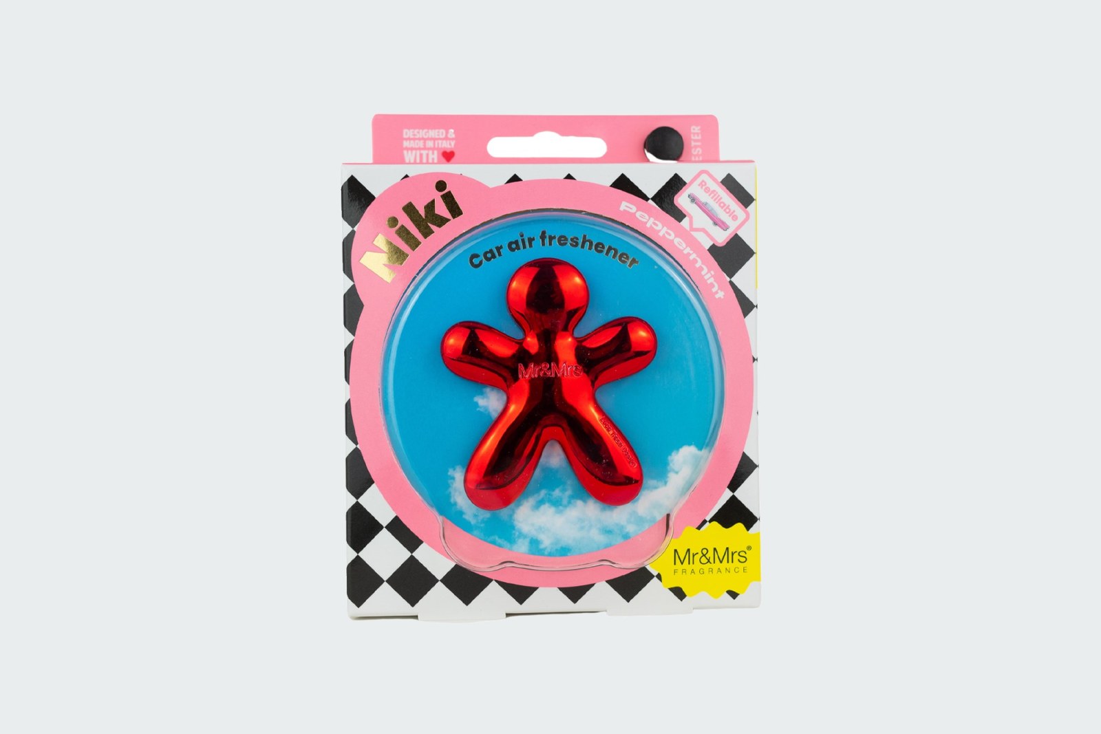 Яркий, нестандартный, дизайнерский ароматизатор Niki (Ники) в виде стилизованного человечка, радостно раскрывшего вам свои объятия, не оставит равнодушными самых модных и искушенных автовладельцев, которые всегда хотят быть в тренде. Парфюмированный аромат способен не только создавать нужную атмосферу в автомобиле, но и подобно персональным ароматам, подчёркивать оригинальность и неповторимость личности владельца. Сменный блок с ароматом крепится к человечку и в случае необходимости очень просто заменяется на новый.