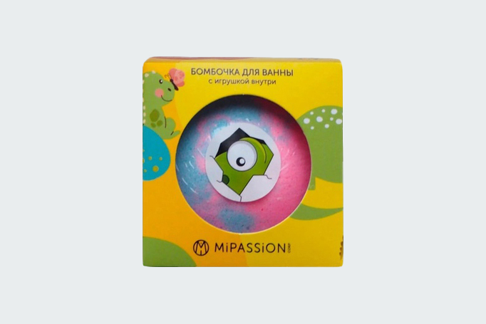 Бомбочка для ванны от MiPASSiON — отличное полезное развлечение для детей. В составе бомбочки собраны 3 вида полезной соли (морская, английская и гималайская). Магний в составе английской соли поможет ребенку успокоиться и подготовиться к сладкому сну. Ценные масла сделают кожу мягкой, шелковистой и увлажненной. Внутри бомбочки ребенка ожидает сюрприз. Это деревянная игрушка, которую после купания можно высушить и раскрасить. Яркие краски бомбочки окрашивают только воду, не остааляя следов на коже малыша и ванне.