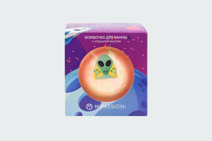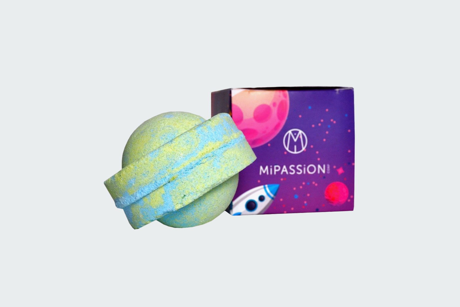 Бомбочка в виде планеты от MiPASSiON — отличное полезное развлечение в ванне. В составе бомбочки собраны 3 вида полезной соли (морская, английская и гималайская). Магний в составе английской соли поможет успокоиться и подготовиться к сладкому сну. Ценные масла сделают кожу мягкой, шелковистой и увлажненной. Внутри бомбочки ожидает сюрприз. Это деревянная игрушка, которую после купания можно высушить и раскрасить. Яркие краски бомбочки окрашивают только воду, не оставляя следов на коже и ванне.