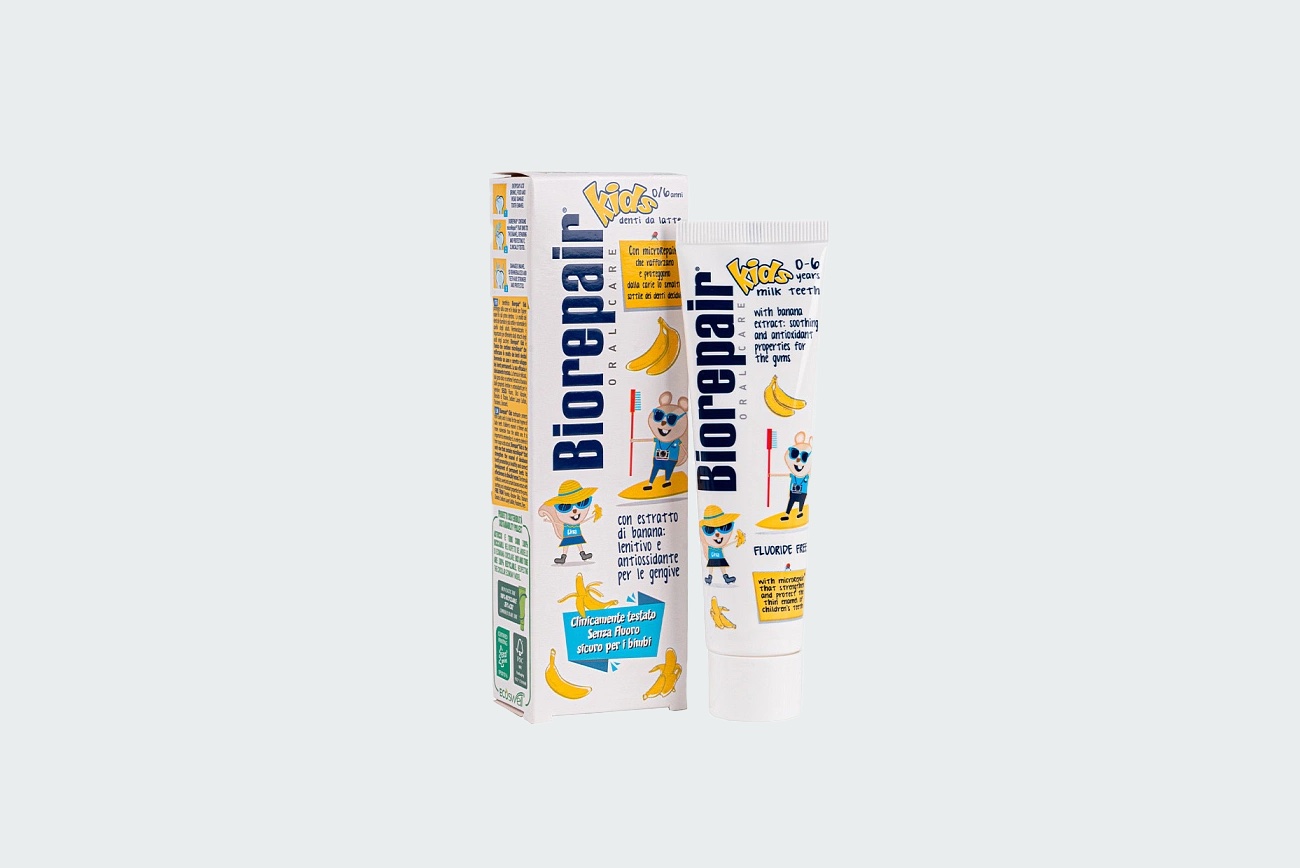 Детская зубная паста Biorepair® Kids со вкусом банана защищает зубы от кариеса и идеально подходит для гигиены молочных зубов. Из-за особенностей строения детских зубов бактерии легко могут проникать внутрь зуба, вызывая кариес и воспаление. Поэтому детская паста обязательно должна укреплять эмаль зубов и активно воздействовать на бактериальную среду, предотвращая образование налета. Одновременно, паста для детей должна быть безопасной и эффективной так же как и взрослая зубная паста.
