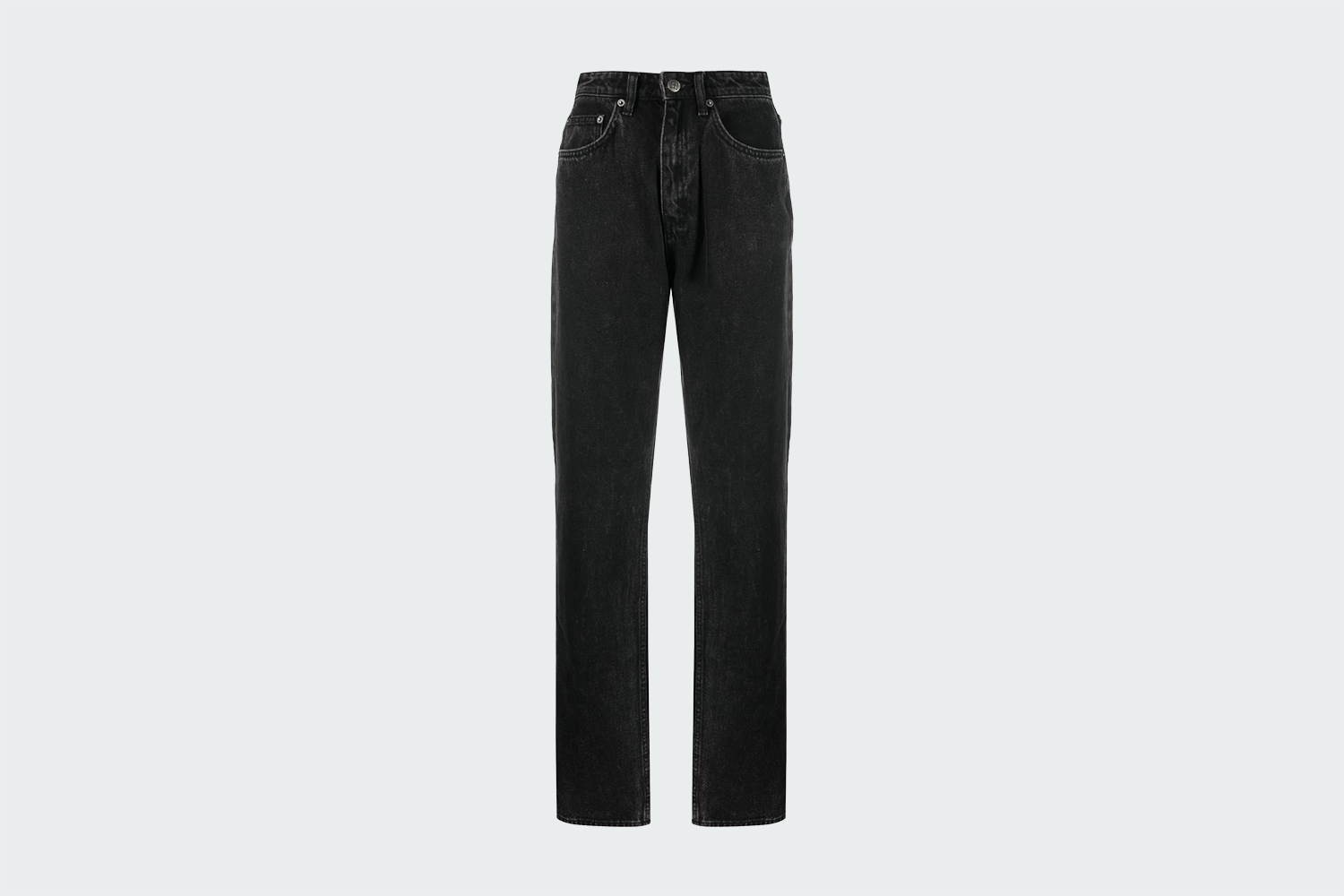 Свободные прямые джинсы с высокой талией и пятью карманами дополнены классической отделкой Ksubi. Модель выполнена из жесткого денима премиум-класса черного цвета с эффектом потертости и украшена съемной карманной биркой.