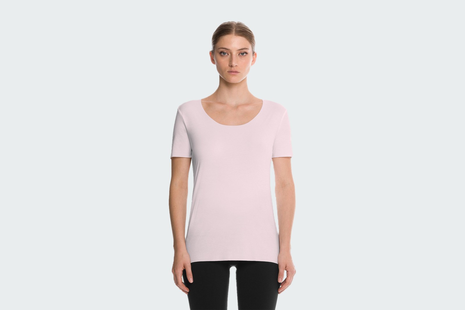 Минималистичная футболка, изготовленная из биоразлагаемых материалов и сертифицированная по золотому уровню стандарта Cradle to Cradle Certified®, отличается мягким материалом, открытой кромкой на вырезке и рукавах, создавая комфортные ощущения при ношении и символизируя экологически осознанный подход к моде.