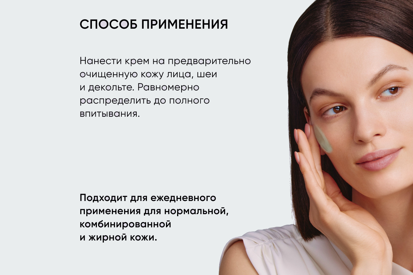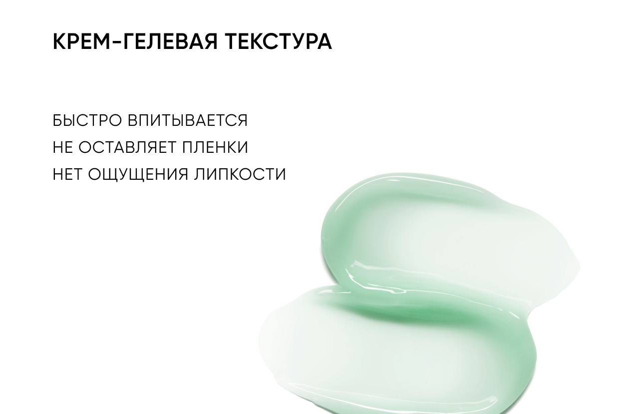 Легкая текстура позволяет использовать крем-гель как базу под макияж: равномерно распределяется и быстро впитывается, уменьшает ощущение жирности и матирует кожу.