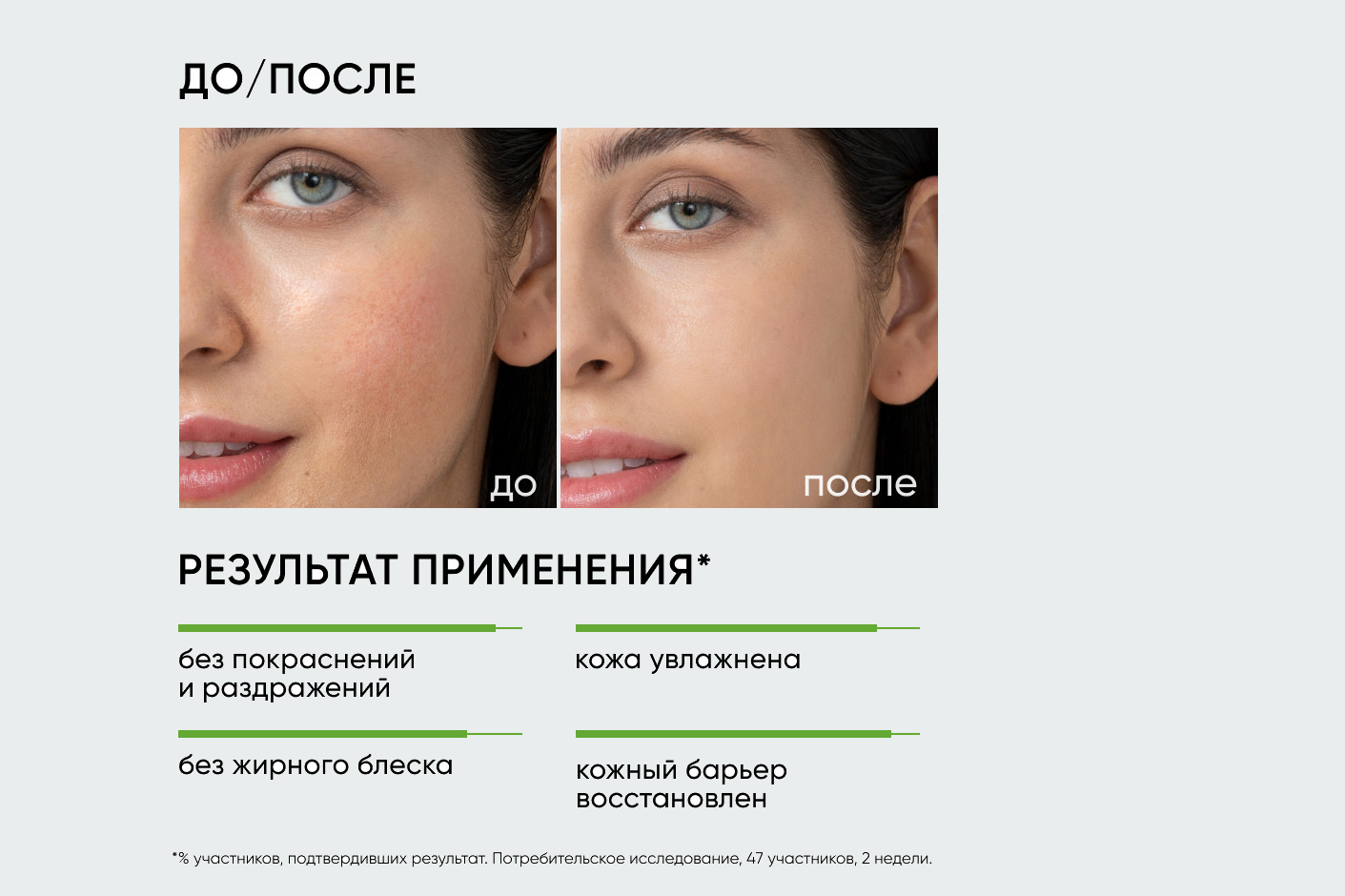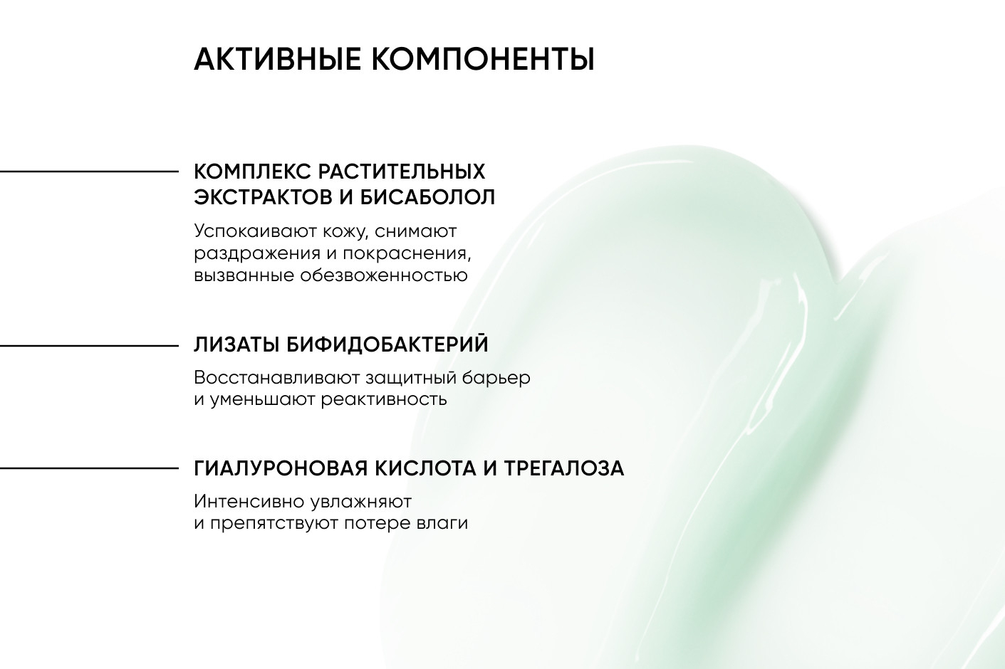 Крем-гель оказывает комплексное действие: успокаивает и смягчает кожу, снижает ее реактивность, снимает раздражения, покраснения и воспаления, восстанавливает защитный барьер кожи и ускоряет регенерацию, интенсивно увлажняет и предотвращает потерю влаги.