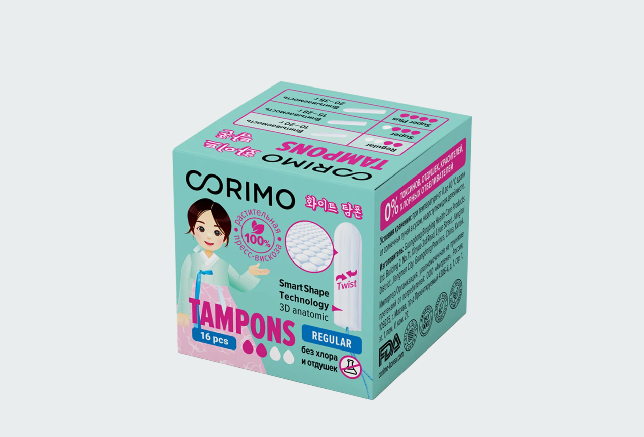 Женские гигиенические тампоны - современные и технологичные тампоны Corimo разработаны совместно с лабораторией в Южной Корее. Впитывающая основа тампонов выполнена из вискозы фармацевтического качества 100% растительного происхождения. Такой абсорбент впитывает лучше и быстрее, чем хлопок. Не вызывает раздражения и аллергических реакций при соблюдении рекомендаций по использованию.