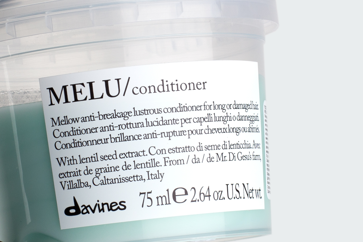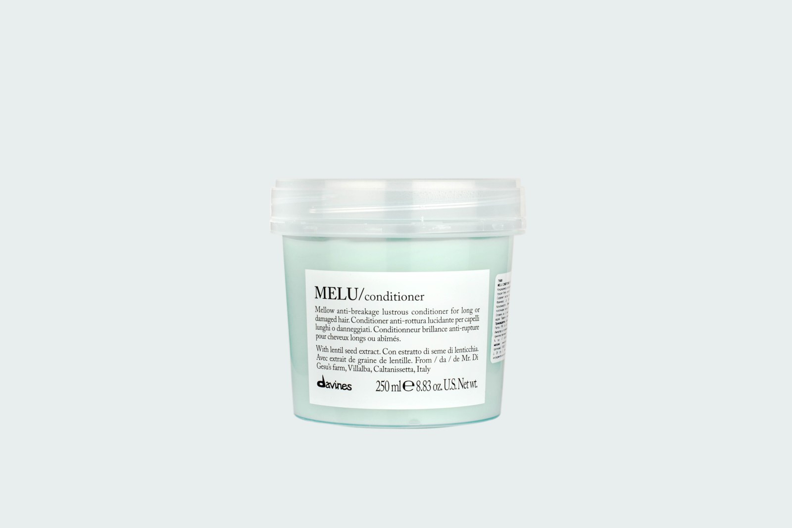 Содержит экстракт семян чечевицы из Виллальбы, выращенной в рамках программы Slow Food Presidium. Формула кондиционера обогащена серином и глютаминовой кислотой обладает питающими и восстанавливающими свойствами. Чечевица из коммуны Виллальба на Сицилии характеризуется высоким содержанием железа и протеина, и низким содержанием фосфора и калия.