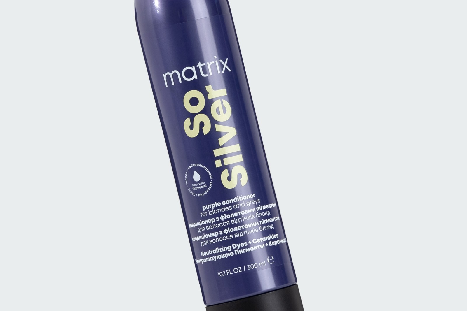 Профессиональный оттеночный кондиционер Matrix So Silver нейтрализует желтизну на светлых оттенках блонд и седых волосах. Фиолетовые пигменты в составе кондиционера работают как нейтрализаторы желтизны на холодных оттенках блонд 8–10 уровней тона. Ухаживающий керамид решает основные проблемы тусклых и хрупких осветленных волос благодаря выраженным увлажняющим, смягчающим и разглаживающим свойствам.