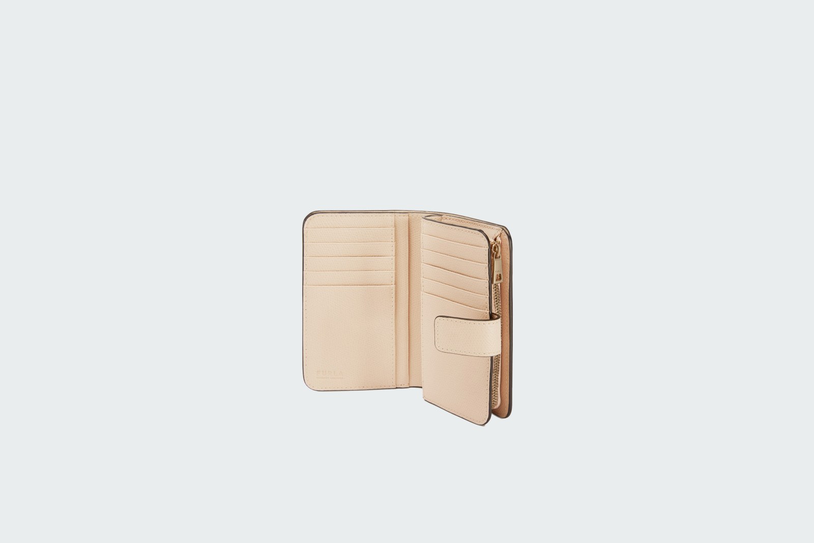 Минималистичный дизайн компактного кошелька Furla Camelia делает его идеальным выбором для любой сумки. Внутреннее отделение, специально предназначенное для хранения купюр, карт и удостоверений личности, изготовлено из гладкой кожи, имеет закругленные углы и элегантные линии.