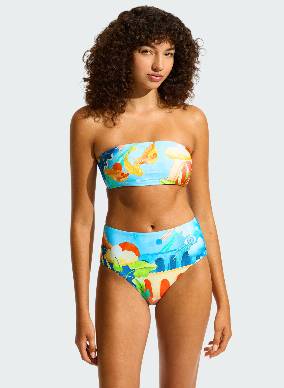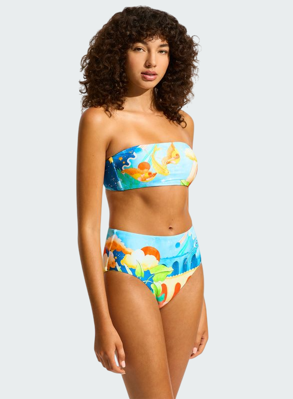 Топ-бандо без бретелек с ярким принтом Aquarius. Съемные чашки обеспечивают легкую поддержку и формируют красивый силуэт.