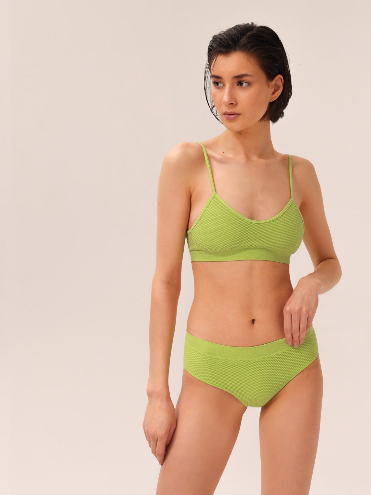 Купальные трусы-слипы изготовлены из эластичной фактурной микрофибры в виде медовых сот. Слипы деликатно закрывают ягодицы, имеют широкую боковую часть и резинку на талии, передняя часть на подкладе. Выполнены по современной бесшовной технологии, которая позволяет изделию идеально облегать тело. Модель идеально подходит для пляжного отдыха и плавания.