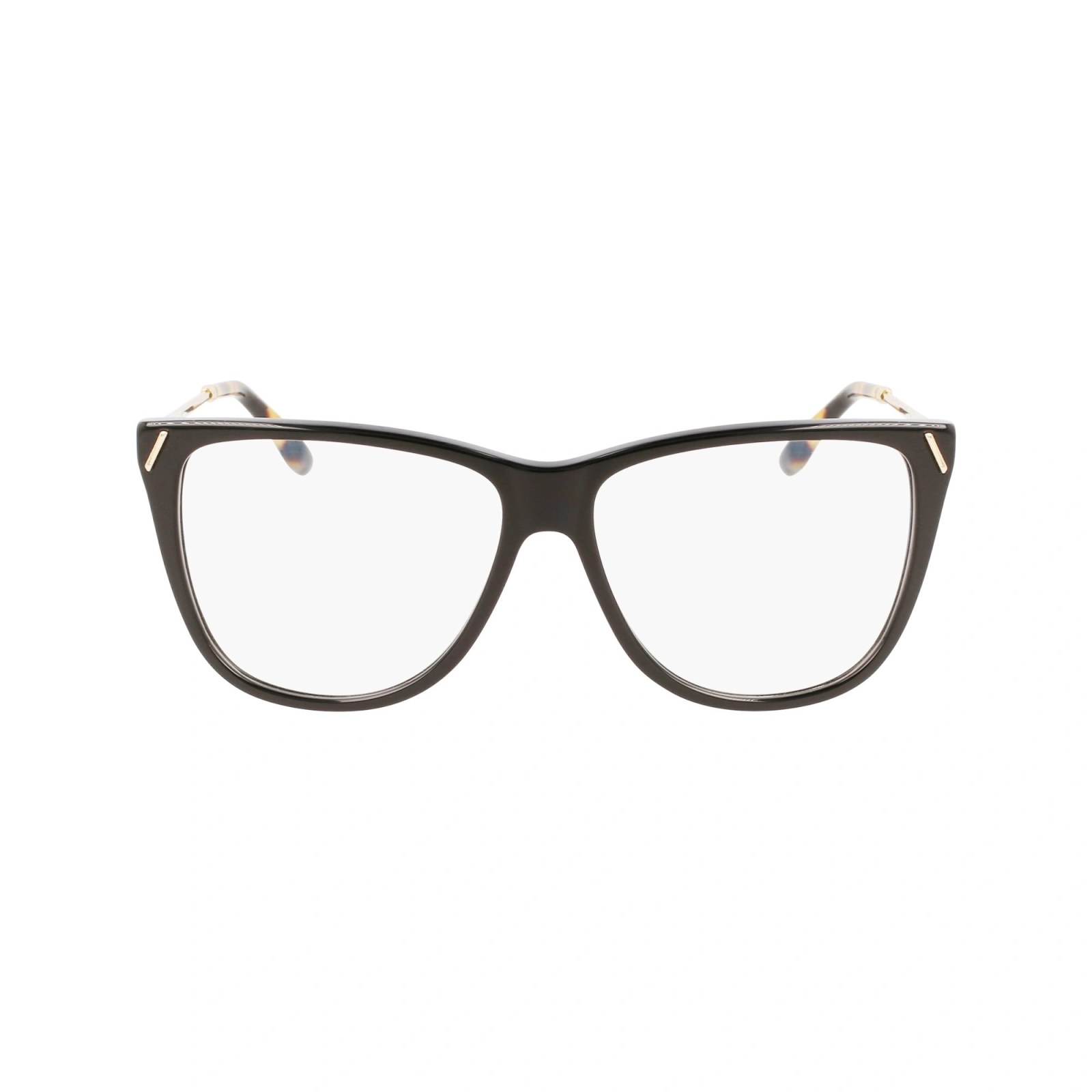 Легкая медицинская оправа из черного ацетата формы «кошачий глаз». Тонкие дужки с наконечником черепахового оттенка украшены монограммой VB. В комплекте — фирменный чехол.