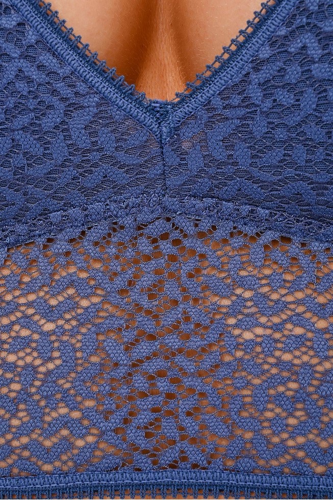 Женский бюстгальтер-топ с мягкой чашкой и регулируемыми бретелями. Резинка под грудью, V-образное декольте, ажурное кружево.