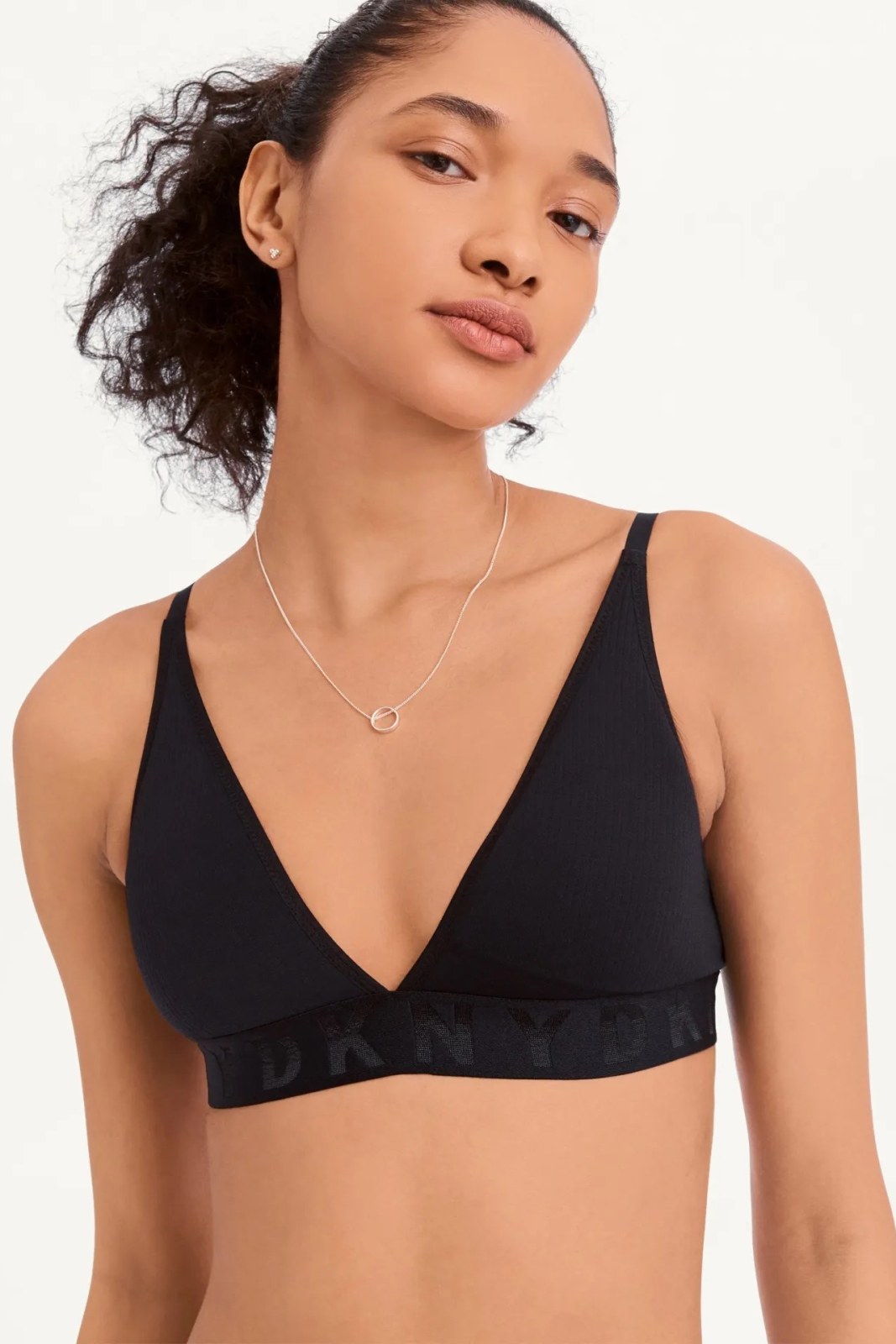 Женский бюстгальтер с мягкой чашкой со вкладышами без косточек. Узор в рубчик, V-образная линия декольте, узкие бретели, эластичный пояс.