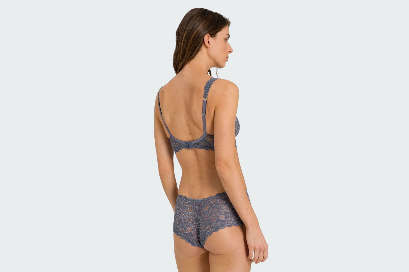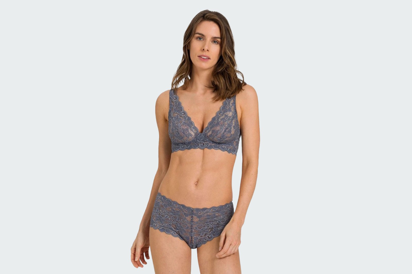Мягкий бюстгальтер из линии Luxury Moments украсит и разнообразит ваш бельевой гардероб. Изделие обеспечивает отличную поддержку и создает привлекательную форму. Глубокий V-образный вырез, полупрозрачные чашечки и фигурное кружево добавляют женственности и изящества этому весьма функциональному, базовому бюстгальтеру. Регулируемые эластичные бретели и застежка с металлическими крючками сзади позволяют подобрать желаемую посадку.