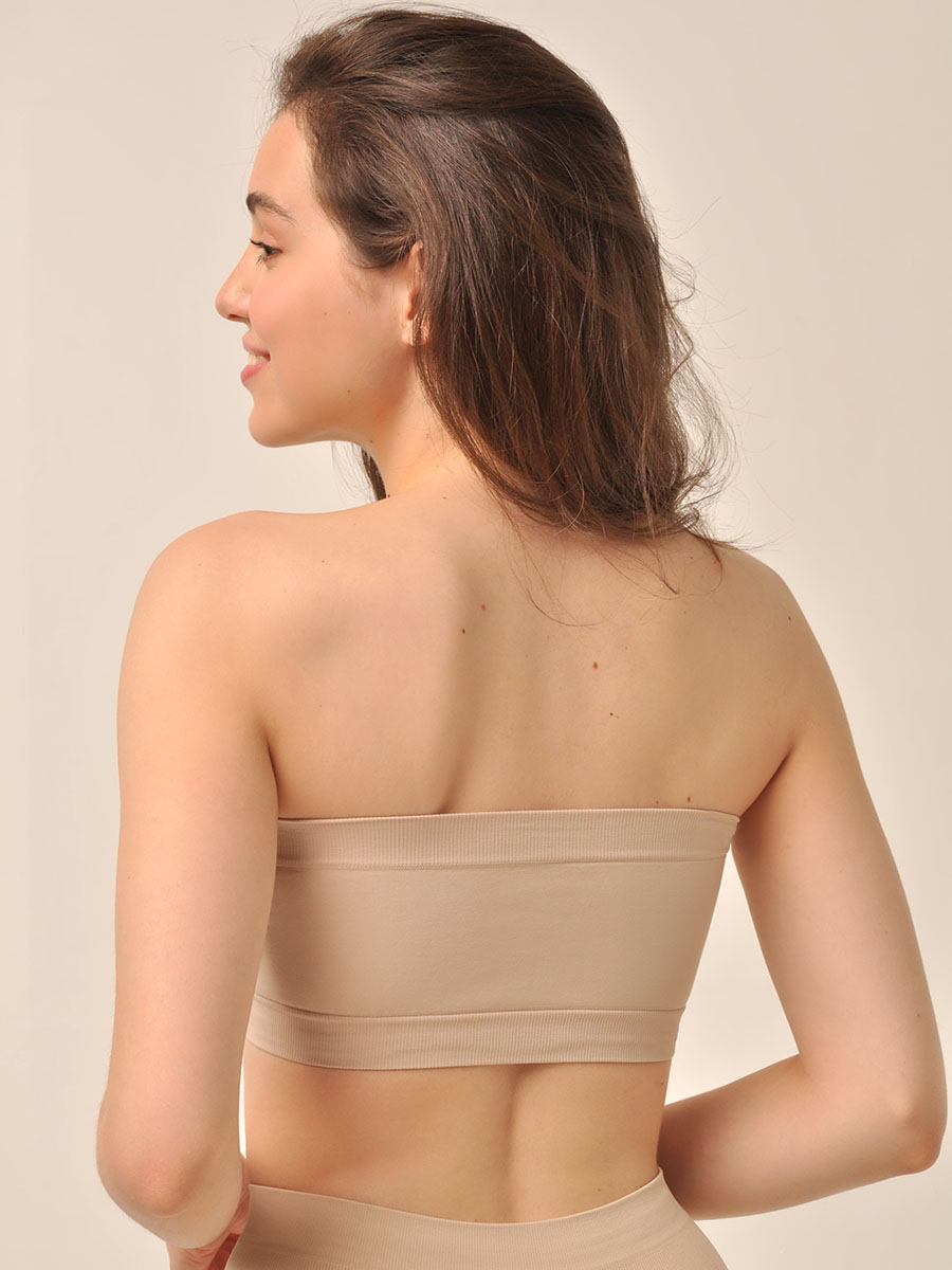 Женский топ-бандо из мягкой эластичной микрофибры. Модель без бретелей. Эластичные резинки надежно фиксируют топ на фигуре.