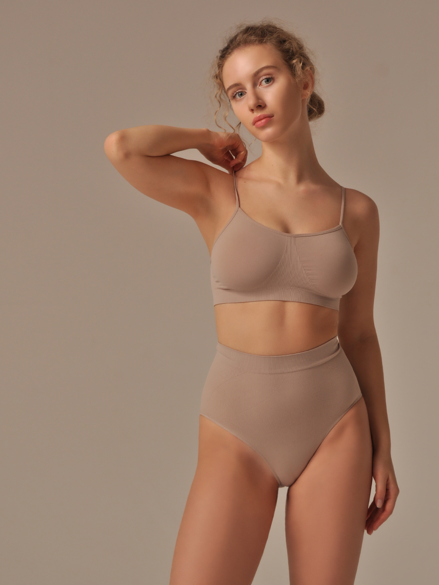 Базовый топ на тонких бретелях. Модель выполнена по бесшовной технологии из мягкой эластичной микрофибры, без чашки и уплотнения. Широкая резинка по нижнему краю обеспечивает мягкую комфортную поддержку груди. Тонкие эластичные бретели не регулируются по длине