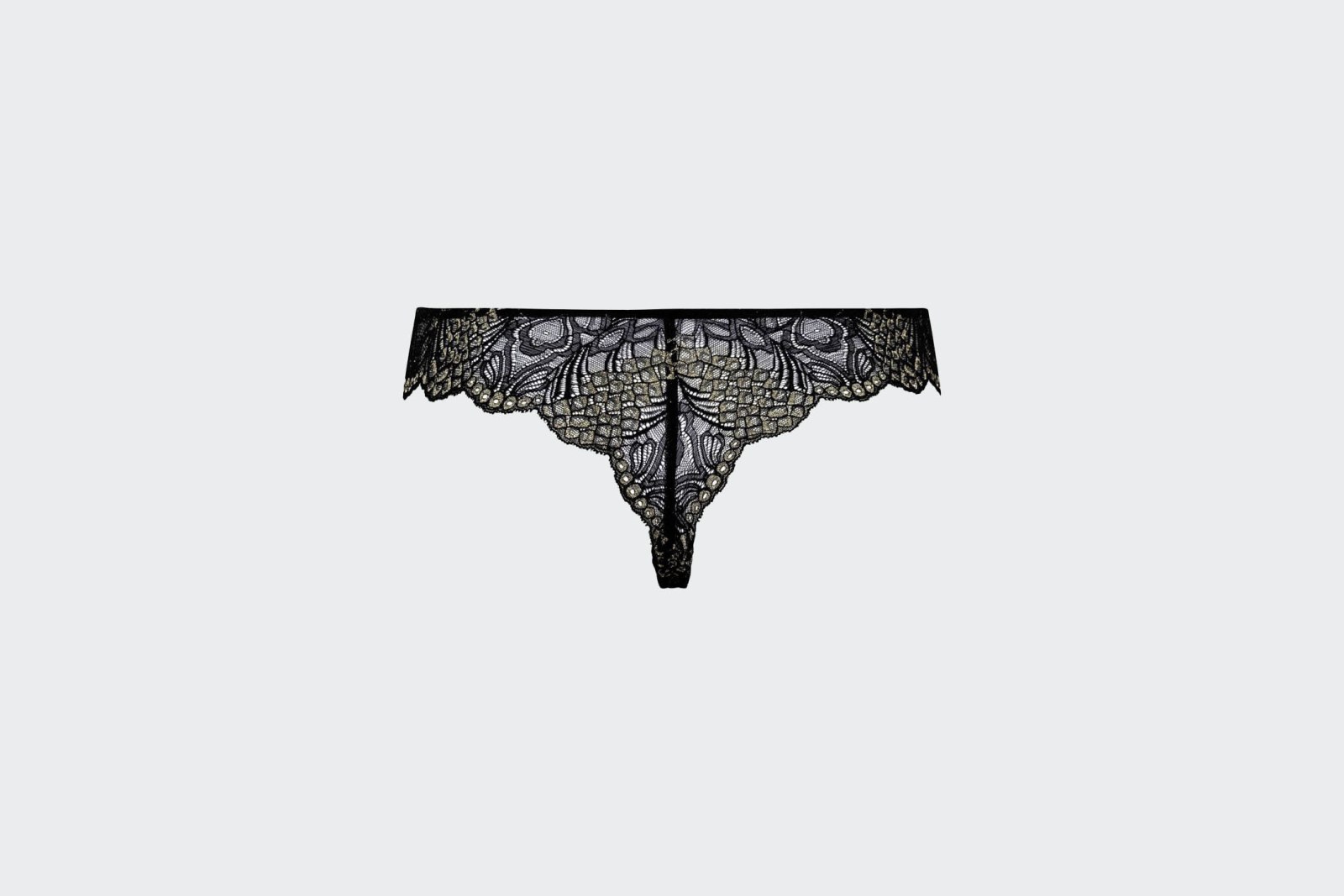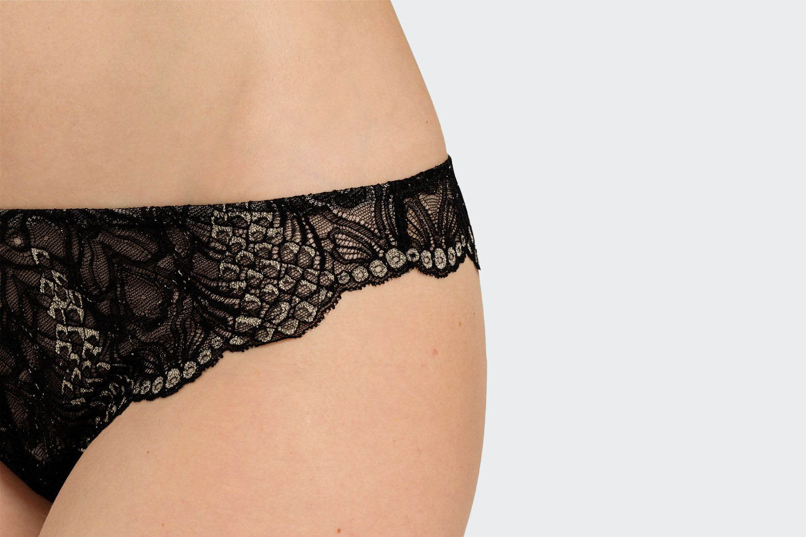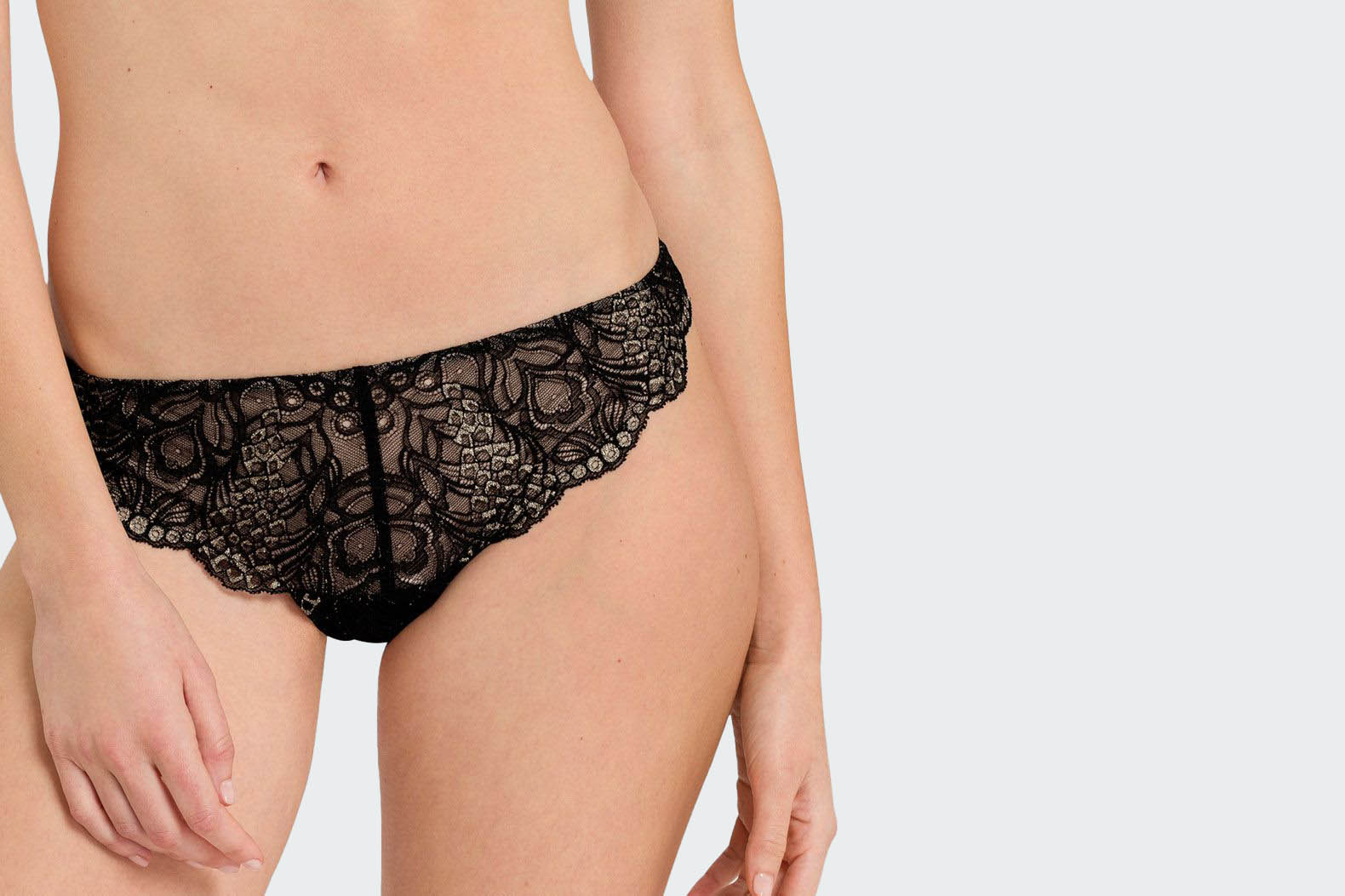 Трусы-танга Lilova изготовлены из нежного кружева. Хлопковая ластовица. Прилегающая к телу модель обеспечивает незаметность под одеждой и повседневный комфорт.