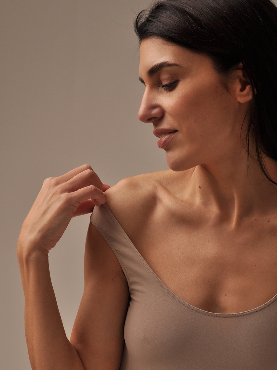 Женское базовое боди на широких бретелях с круглым вырезом. Модель выполнена из мягкой эластичной микрофибры без боковых швов. Низ изделия оформлен в виде классических трусов слипов с застёжкой – крючки. Благодаря бесшовной технологии изготовления, боди идеально облегает фигуру и ощущается как вторая кожа.