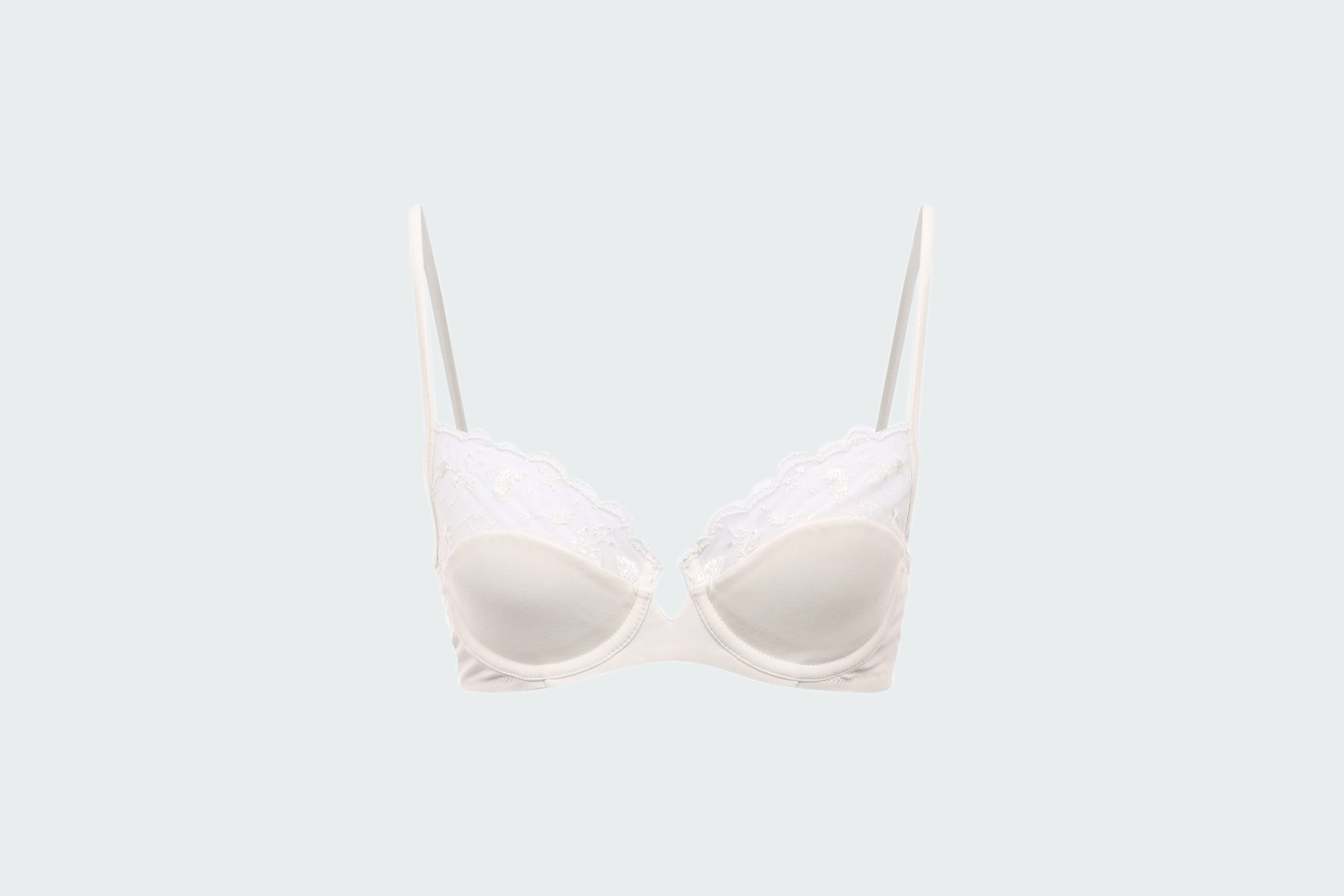 Сочетание современной женственности и повседневной роскоши. Бюстгальтер с косточками с мягкими чашками и регулируемыми бретелями безупречно подчеркивает фигуру. Выполнен из нежного тюля с цветочным орнаментом и ажурными краями.
