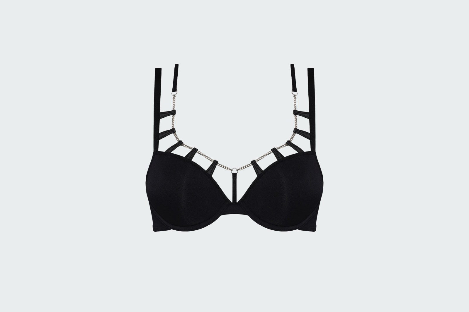 Дизайнерский бюстгальтер Marlies Dekkers из коллекции Rock City, не имеющий аналогов. В этом дерзком бюстгальтере push-up сочетаются гладкий черный цвет, цепи и кожа. Гладкая чашка с мягким наполнителем push-up создает красивое декольте, а цепи притягивают взгляд именно туда, куда нужно.
