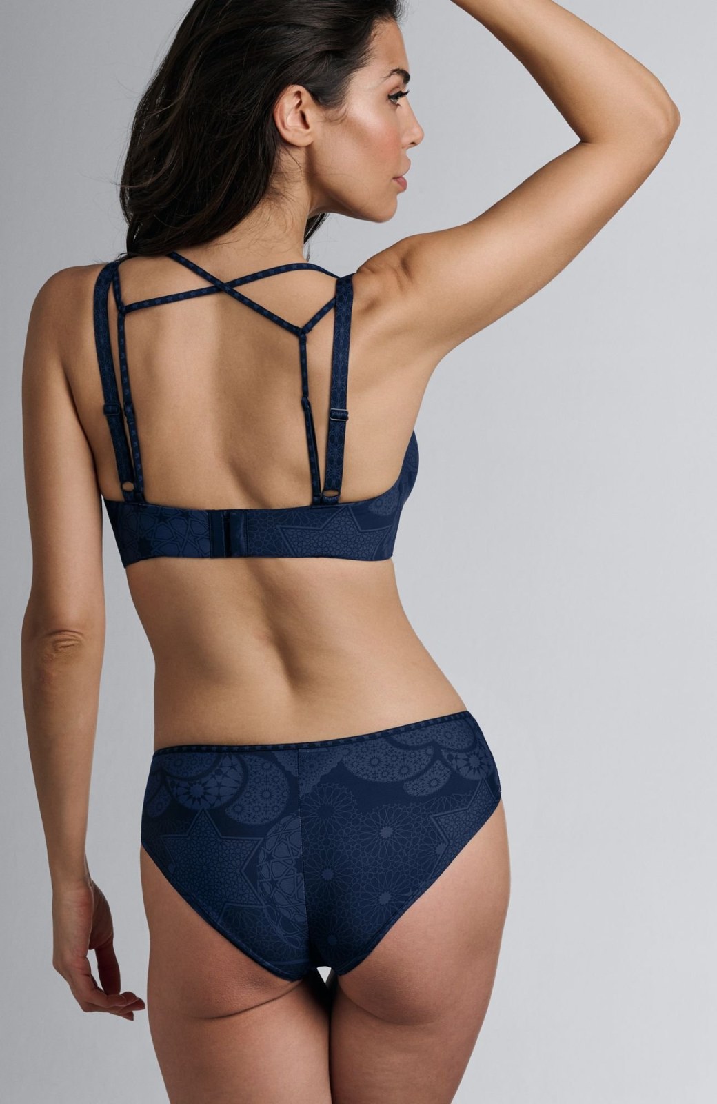 Бюстгальтер с закрытыми чашками и регулируемыми бретелями обеспечивает комфортную посадку и надежную поддержку груди.
