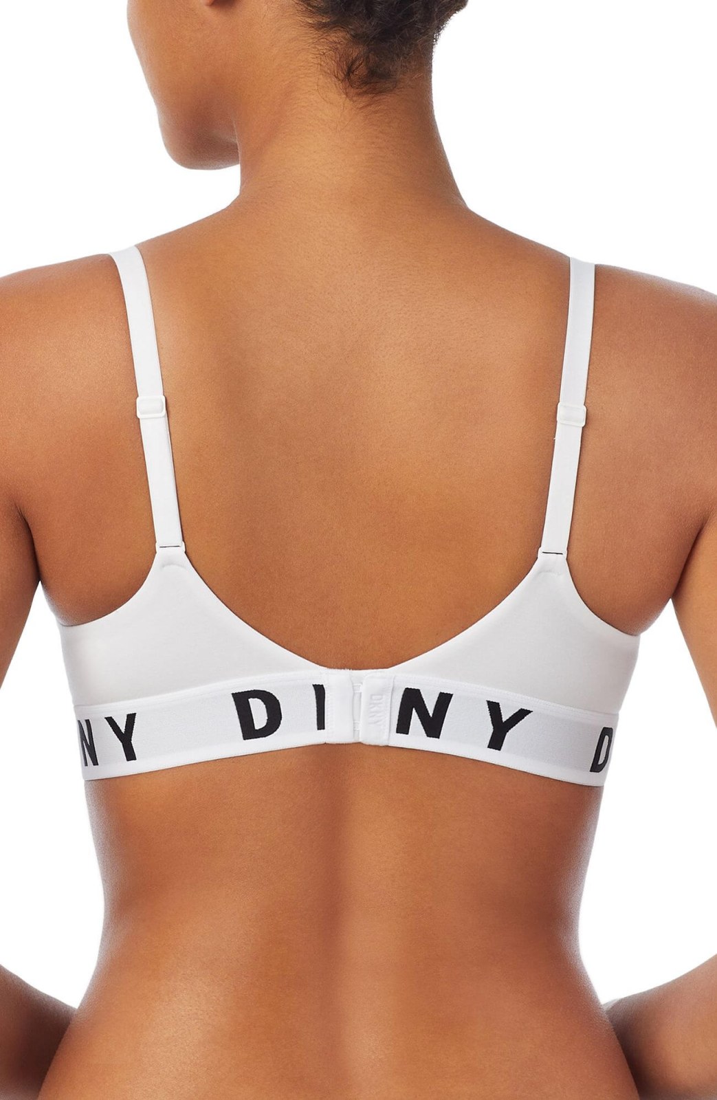 Узкие регулируемые бретели, широкая эластичная резинка под грудью декорирована фирменным логотипом, застежка сзади на три крючка.