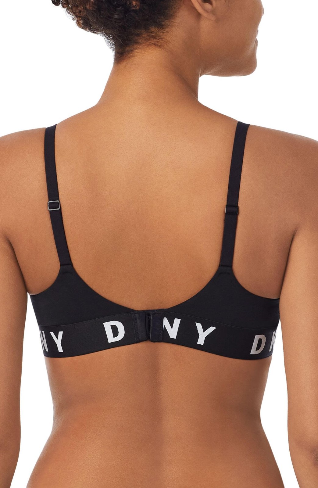 Узкие регулируемые бретели, широкая эластичная резинка под грудью декорирована фирменным логотипом, застежка сзади на три крючка.