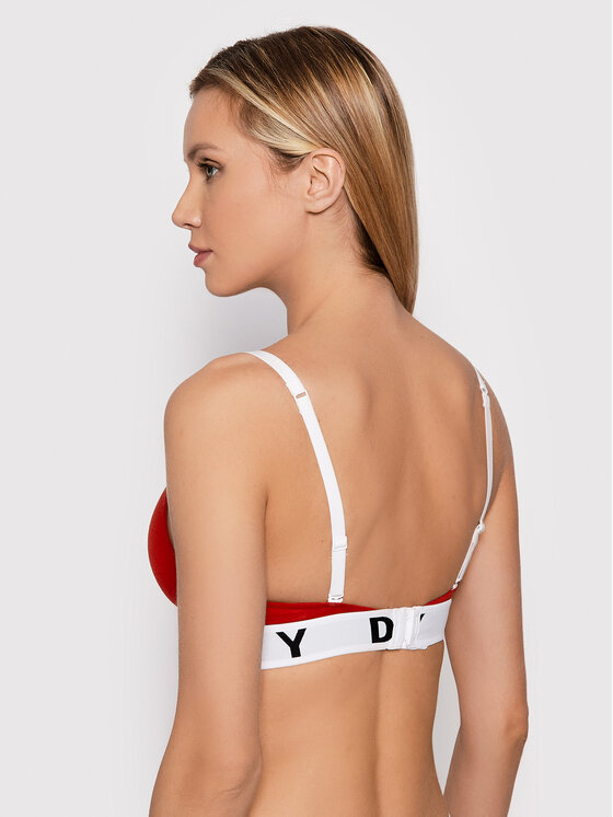 Узкие регулируемые бретели смыкаются между лопаток при помощи крючка. V-образная зона декольте, широкая эластичная резинка под грудью декорирована фирменным логотипом, застежка сзади на три крючка.