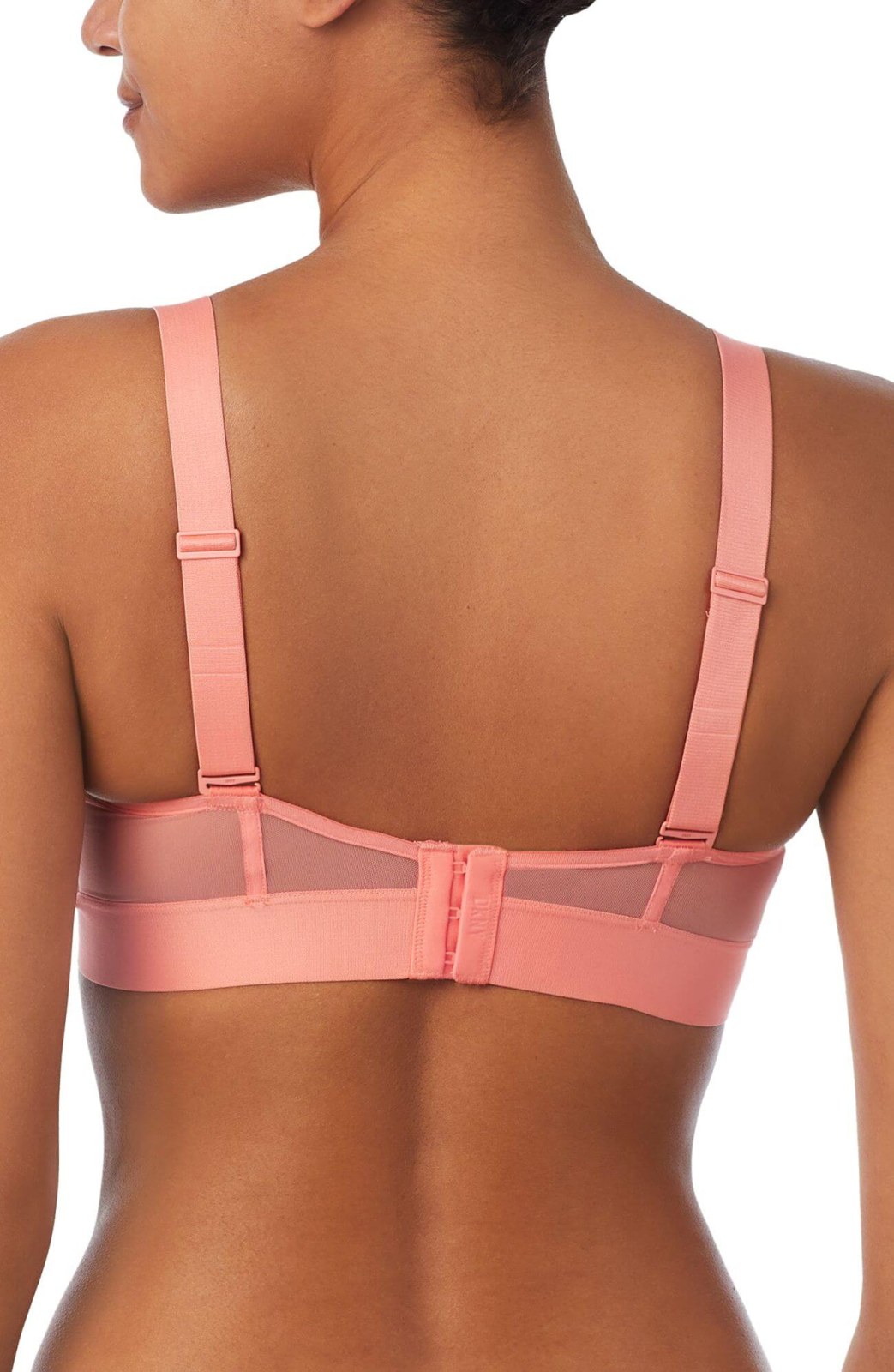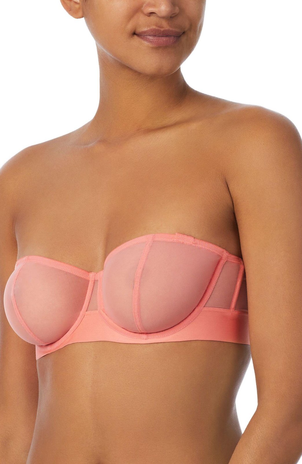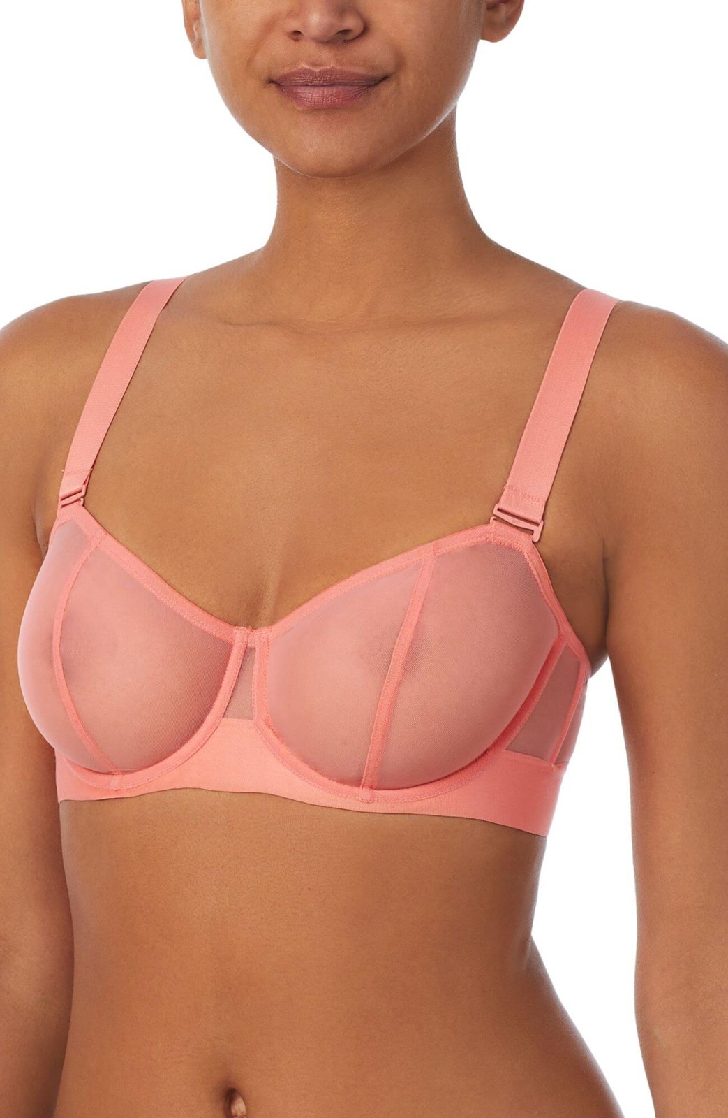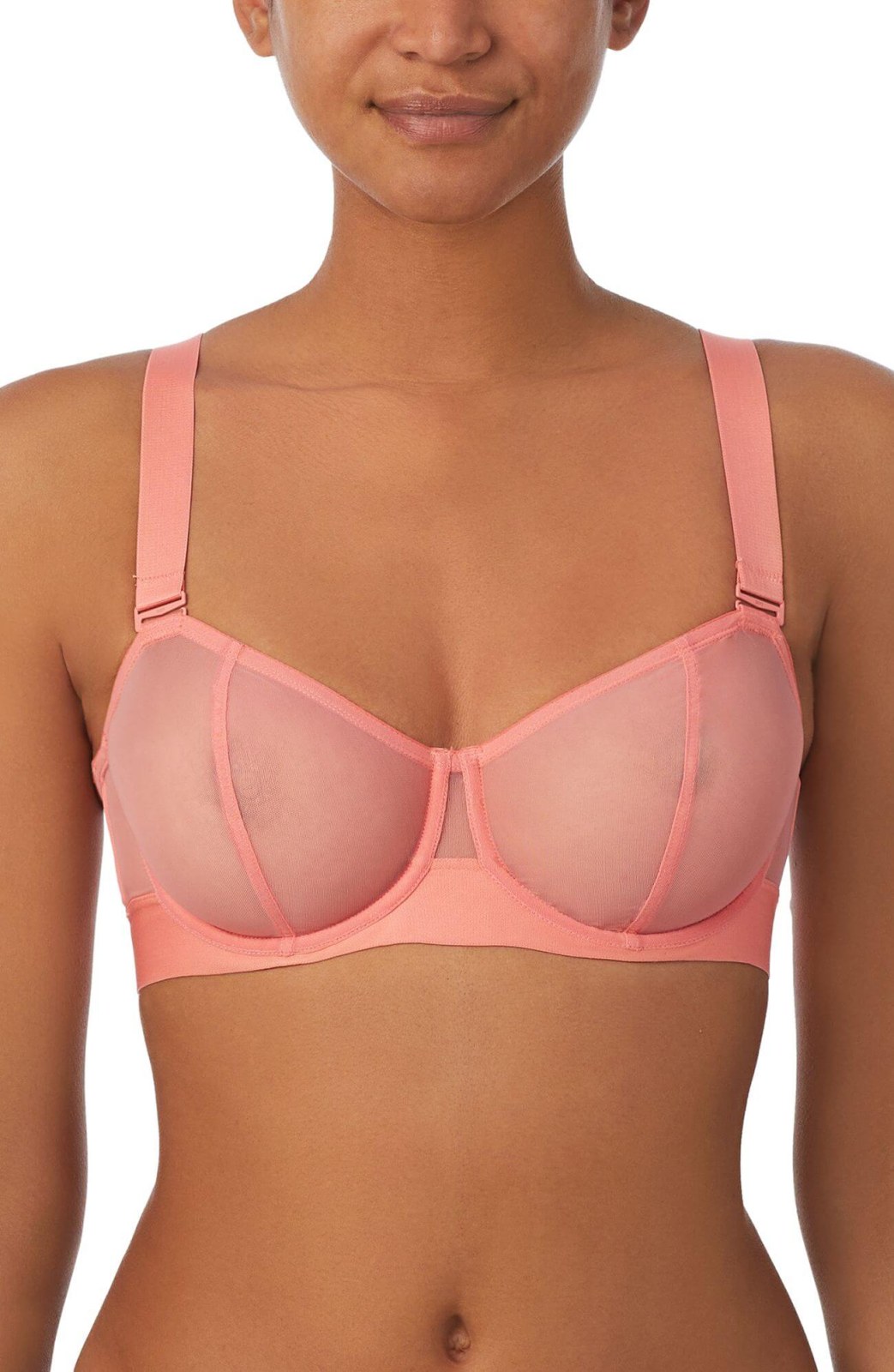 Бюстгальтер с мягкой чашкой из тонкого полупрозрачного тюля. Широкая поддерживающая резинка под грудью, боковые косточки и регулируемые отстегивающиеся бретели, силиконовая фиксация по контуру декольте. Застежка на три крючка в три позиции.