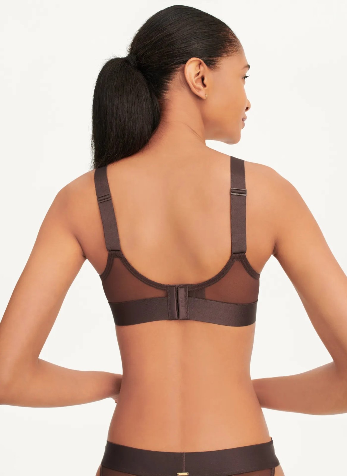 Женский бюстгальтер-бралетт c мягкой чашкой без косточек и резинкой под грудью. Регулируемые бретели, полупрозрачный тюль, застежка на 3 крючка в 3 позиции.