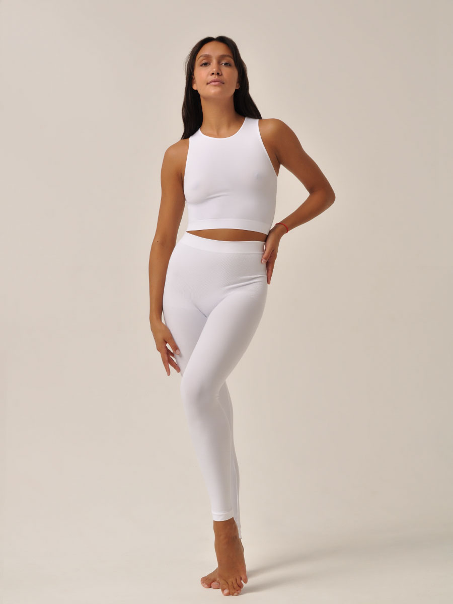 Женские базовые леггинсы со средней посадкой из мягкой эластичной микрофибры. Модель выполнена по бесшовной технологии, без переднего и боковых швов, что обеспечивает идеальную посадку по фигуре и комфорт в течение всего дня. Леггинсы подойдут как для дома и занятий спортом, так и для стильных городских образов.