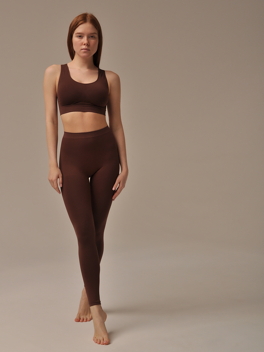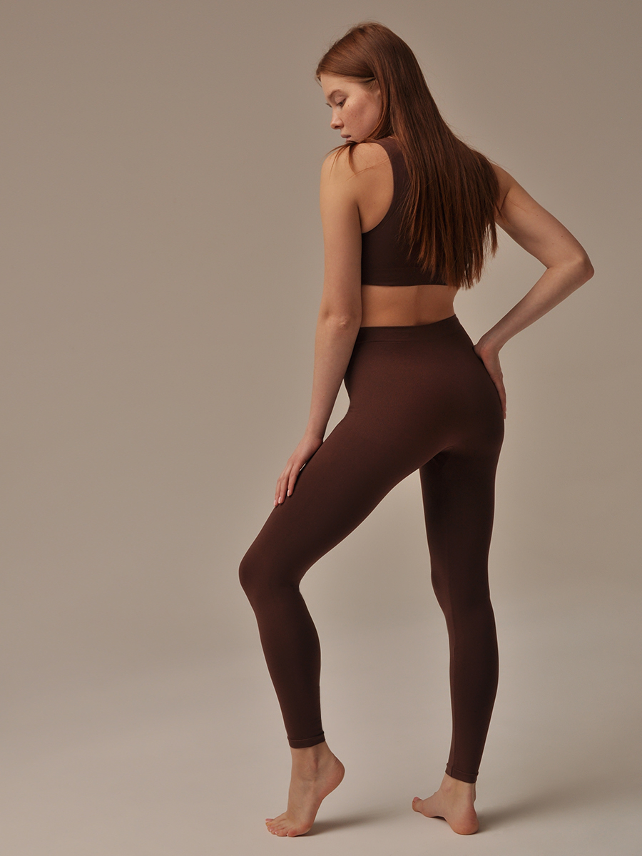 Женские базовые леггинсы со средней посадкой из мягкой эластичной микрофибры. Модель выполнена по бесшовной технологии, без переднего и боковых швов, что обеспечивает идеальную посадку по фигуре и комфорт в течение всего дня. Леггинсы подойдут как для дома и занятий спортом, так и для стильных городских образов.
