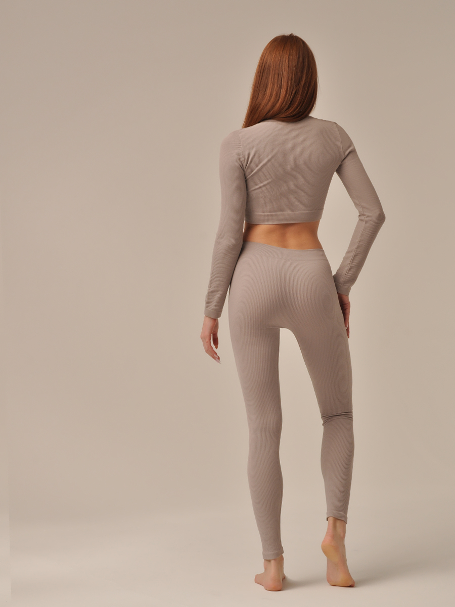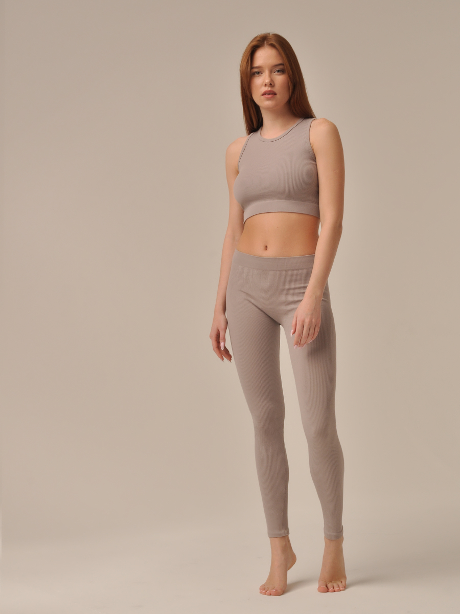Женские леггинсы в рубчик со средней посадкой из мягкой фактурной микрофибры. Модель выполнена по бесшовной технологии, без переднего и боковых швов, что обеспечивает идеальную посадку по фигуре и комфорт в течение всего дня. Леггинсы подойдут как для дома, так и для стильных городских образов.