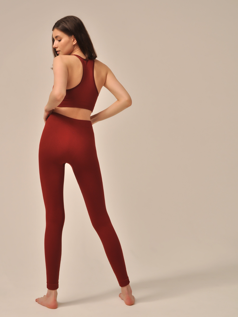 Женские спортивные длинные леггинсы из мягкой эластичной микрофибры с фактурными вставками. Специальная бесшовная технология позволяет изделию идеально облегать тело. Плотная ткань не просвечивает, не мнется и не требует глажения.
