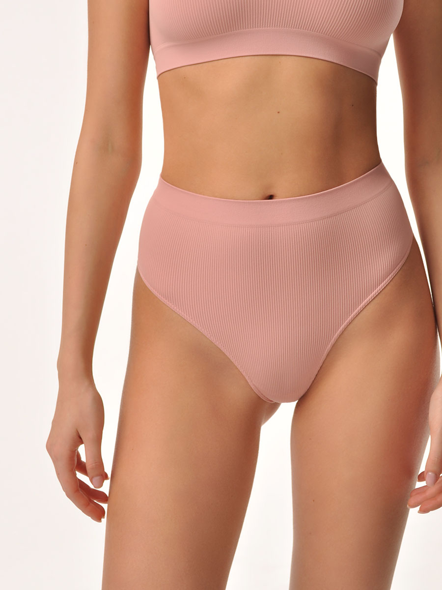 Трусы-стринги с высокой посадкой из мягкой эластичной микрофибры в рубчик с гигиенической ластовицей. Широкая резинка в рубчик обеспечивает удобную посадку и не перетягивает фигуру. Специальная бесшовная технология позволяет изделию идеально облегать тело. Не мнется и не требует глажения.