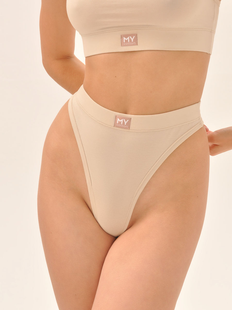 Трусы стринги с высокой посадкой. Модель имеет гигиеническую ластовицу. Специальная бесшовная технология позволяет изделию идеально облегать тело, широкая резинка обеспечивает комфортную посадку и не перетягивает фигуру.