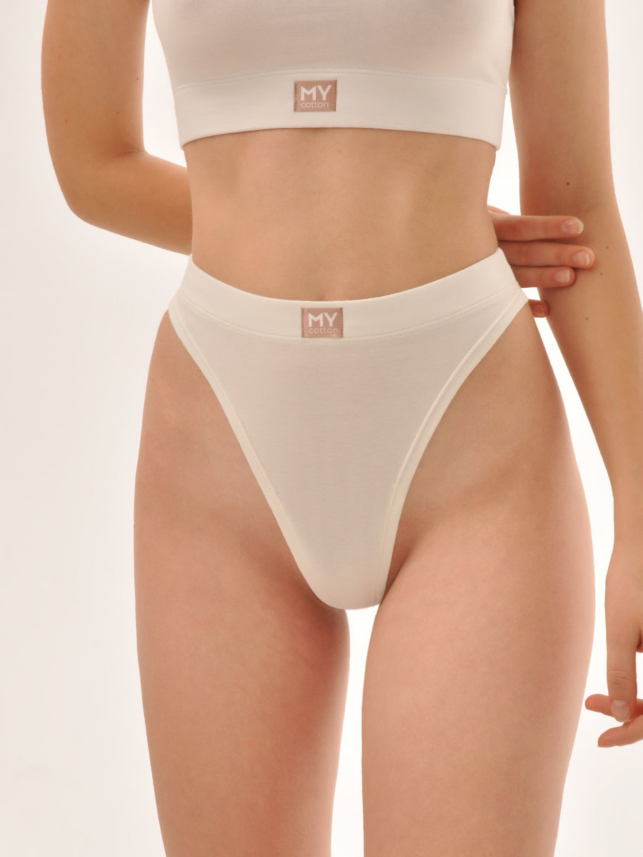 Трусы стринги с высокой посадкой. Модель имеет гигиеническую ластовицу. Специальная бесшовная технология позволяет изделию идеально облегать тело, широкая резинка обеспечивает комфортную посадку и не перетягивает фигуру.