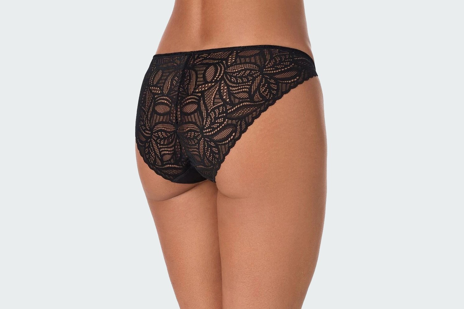 Трусы-слипы с низкой посадкой. Тонкий эластичный пояс для комфортной посадки. Элегантный кружевной материал по всей поверхности.