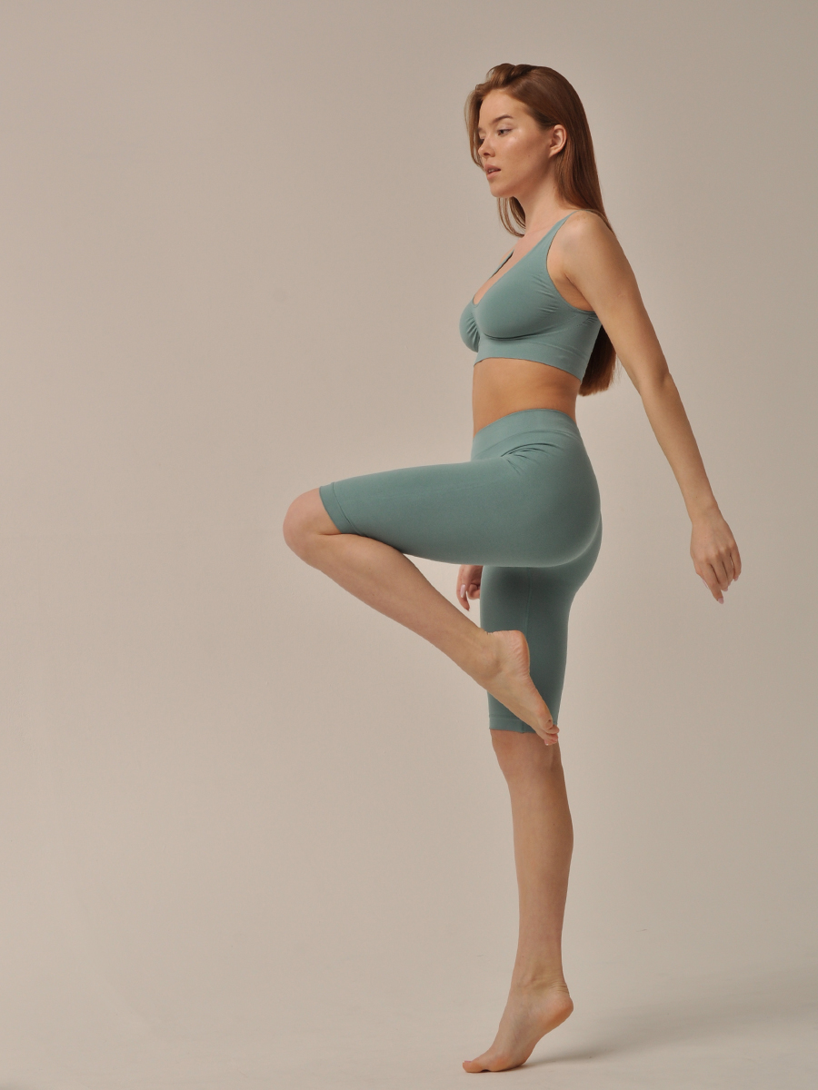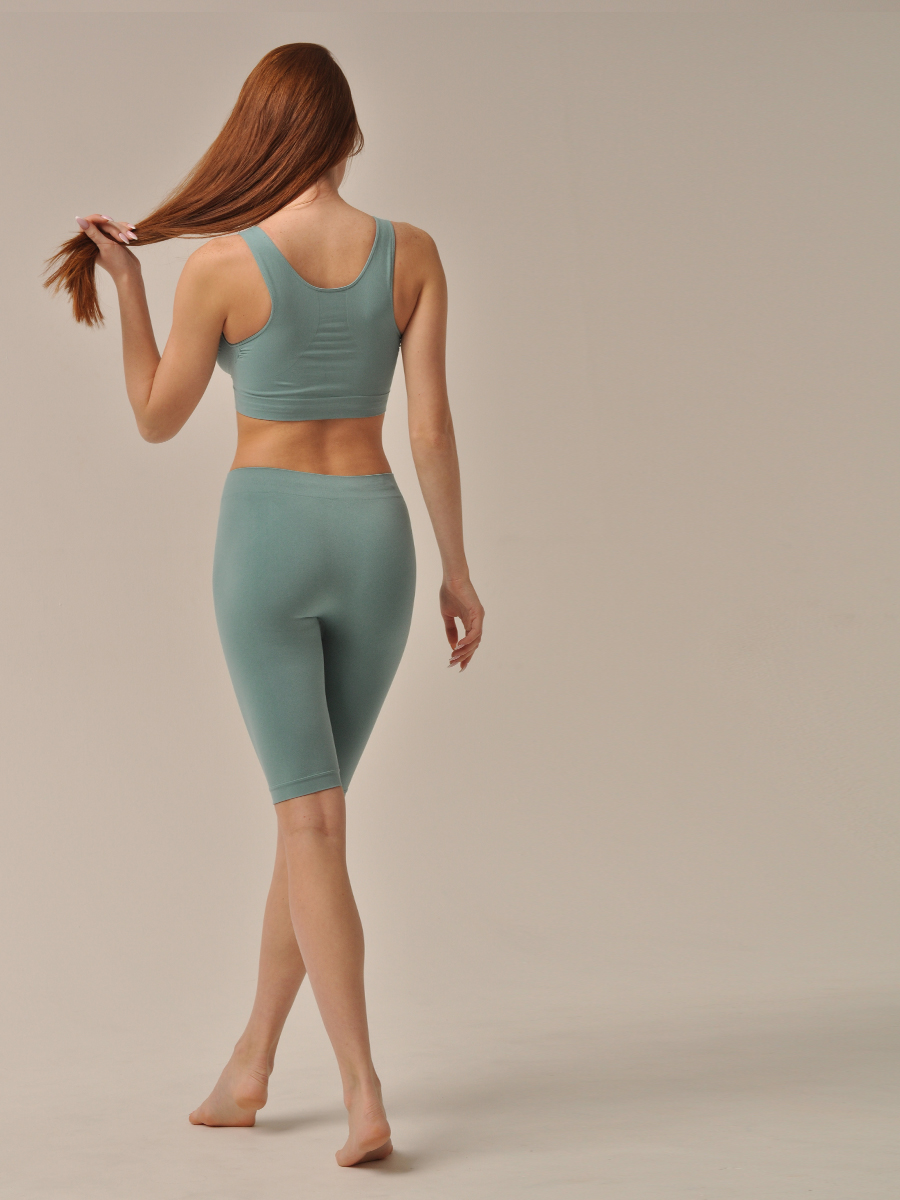 Велосипедки со средней посадкой. Модель выполнена из мягкой эластичной микрофибры по бесшовной технологии, без переднего и боковых швов, единственный плоский шов расположен на внутренней поверхности ног.