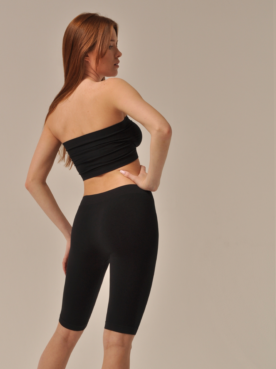 Велосипедки со средней посадкой. Модель выполнена из мягкой эластичной микрофибры по бесшовной технологии, без переднего и боковых швов, единственный плоский шов расположен на внутренней поверхности ног.