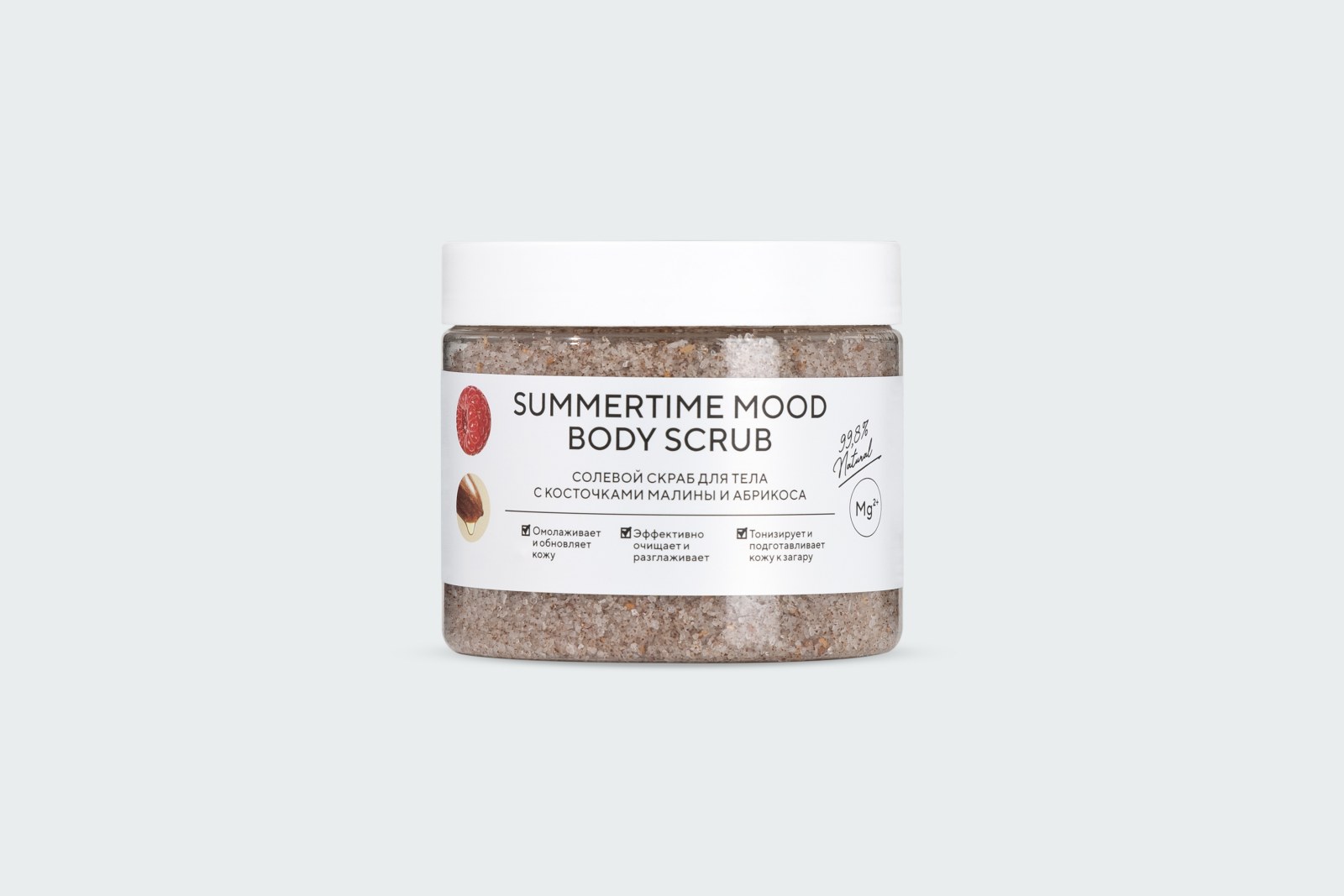 Ягодный соляной скраб SUMMERTIME MOOD BODY SCRUB с запахом лесных ягод прекрасно отшелушивает кожу, избавляет от отёков, уменьшает пигментацию и проявления купероза, делая кожу гладкой, мягкой, увлажнённой и подтянутой.