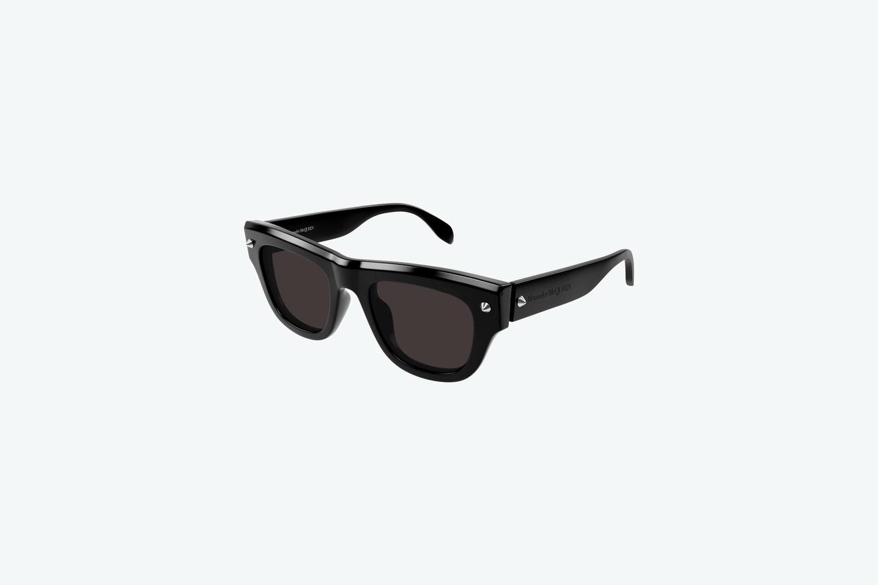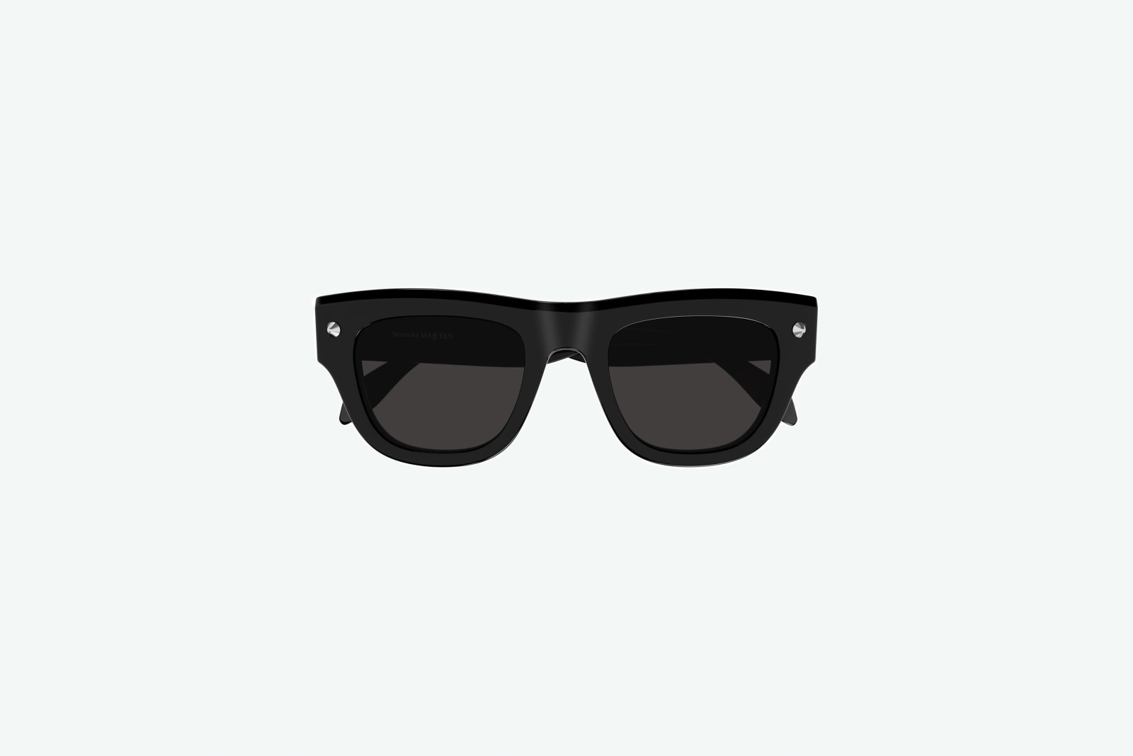 Солнцезащитные очки от Alexander McQueen отлично подойдут как для представительниц прекрасного пола, так и для мужчин. Основной материал, из которого выполнена данная модель, ацетат, в чёрном цвете. Линзы имеют серый цвет, сделаны из нейлона и обладают 100% защитой от ультрафиолетового излучения.