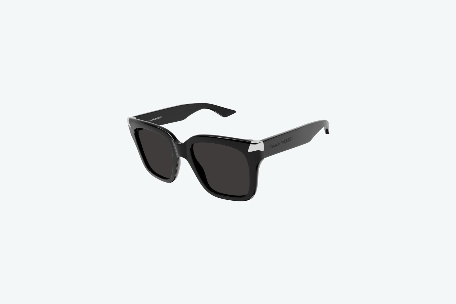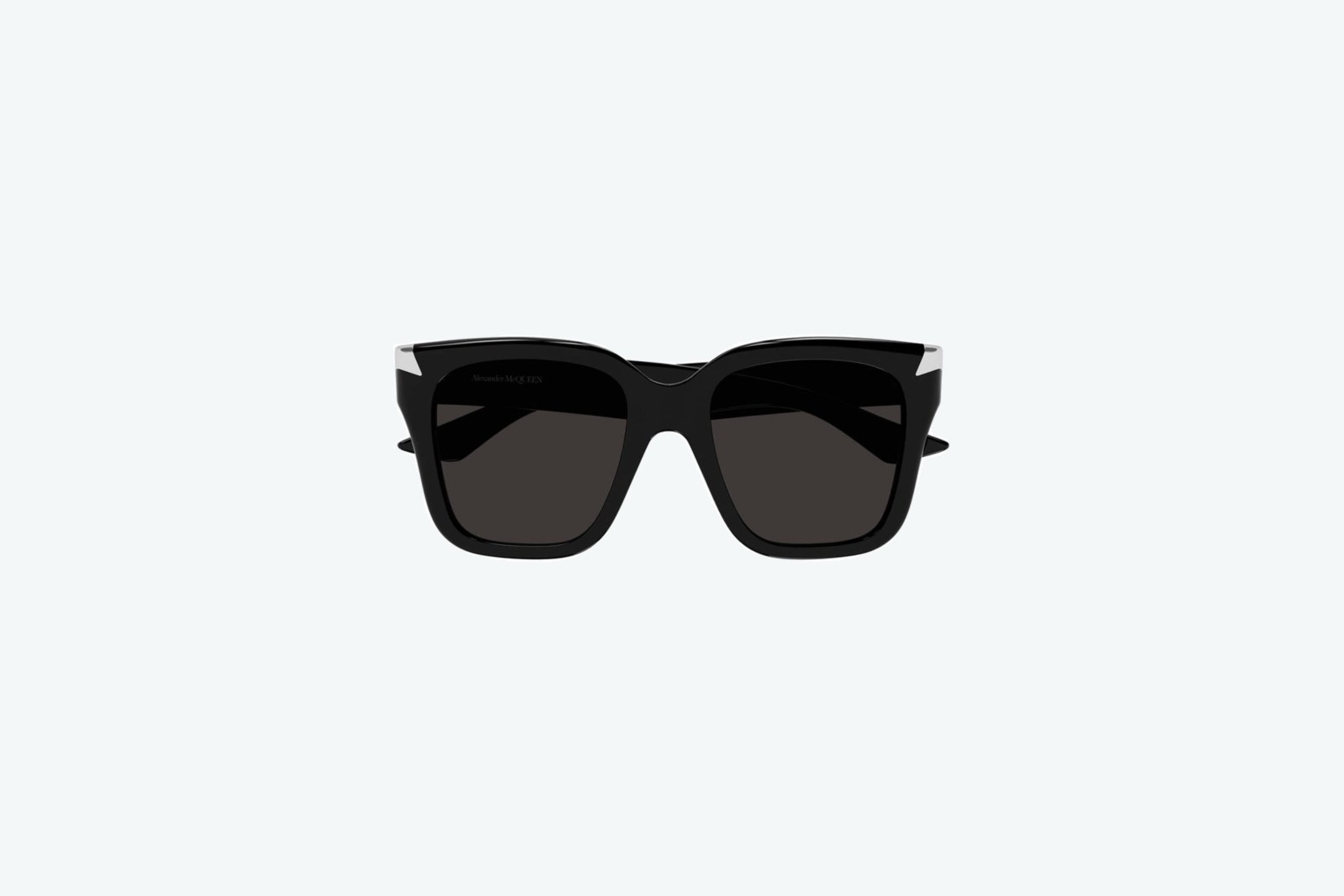 Солнцезащитные очки от Alexander McQueen отлично подойдут как для представительниц прекрасного пола, так и для мужчин. Основной материал, из которого выполнена данная модель, ацетат, в чёрном цвете. Линзы имеют серый цвет, сделаны из нейлона и обладают 100% защитой от ультрафиолетового излучения.