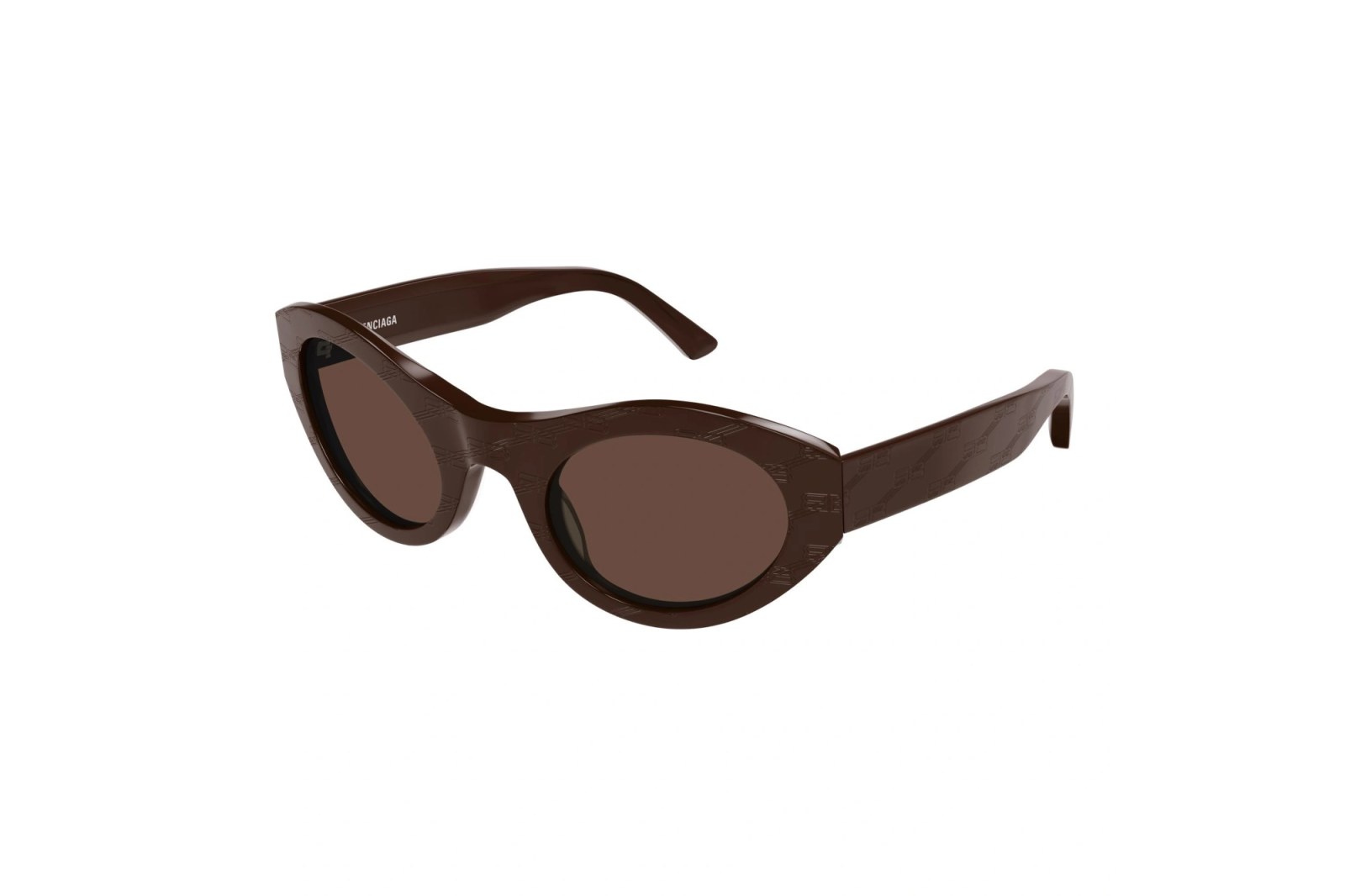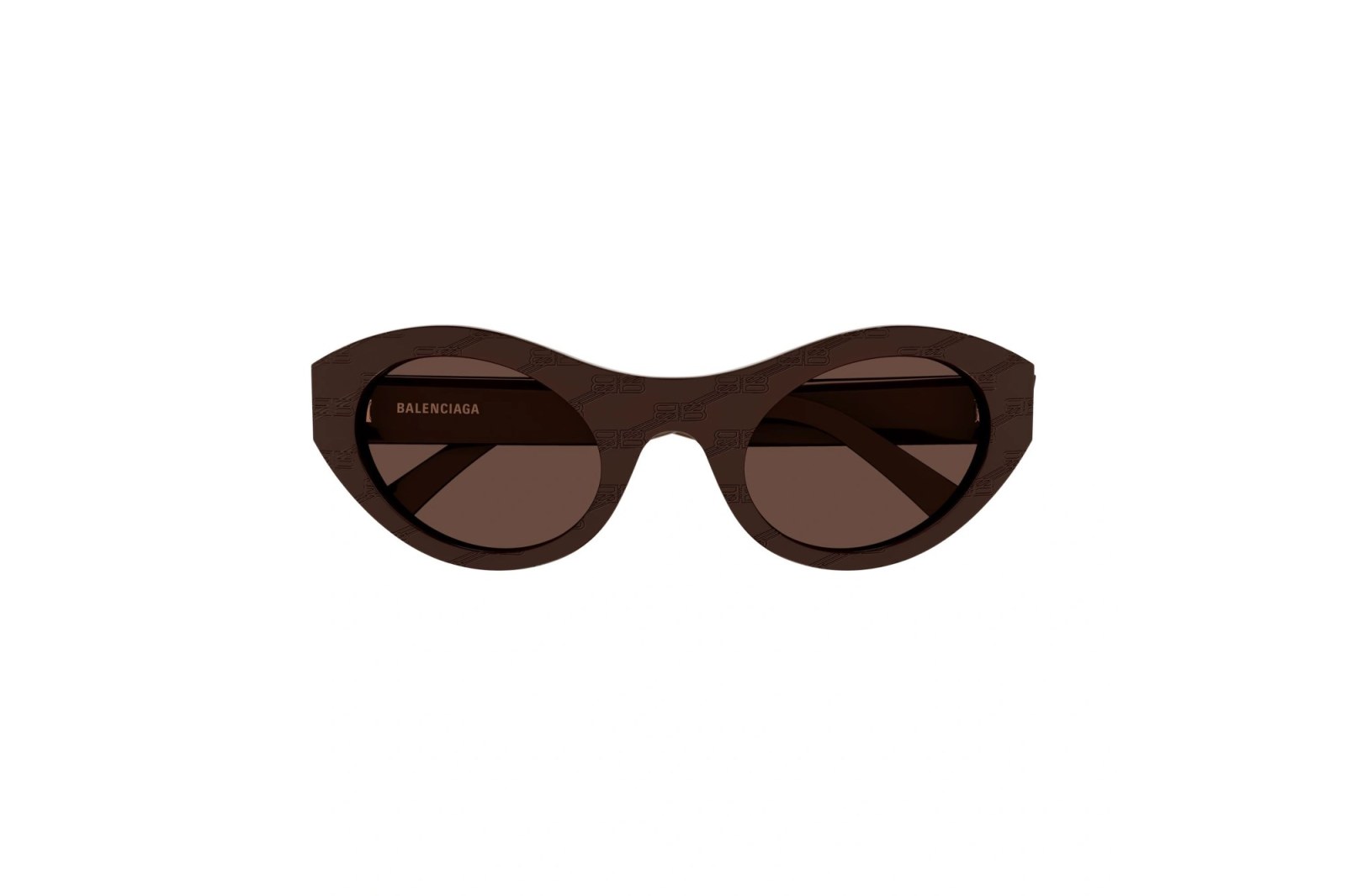 Массивная овальная оправа из прочного ацетата коричневого цвета украшена логотипами бренда по всей поверхности. Коричневые линзы на 100% защищают глаза от вредного ультрафиолета. В комплекте — фирменный чехол и салфетка.