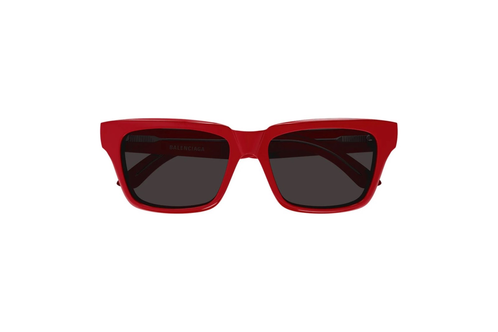 Стильная прямоугольная оправа из прочного красного ацетата. Серые линзы на 100% защищают глаза от вредного ультрафиолета. В комплекте — фирменный чехол и салфетка.