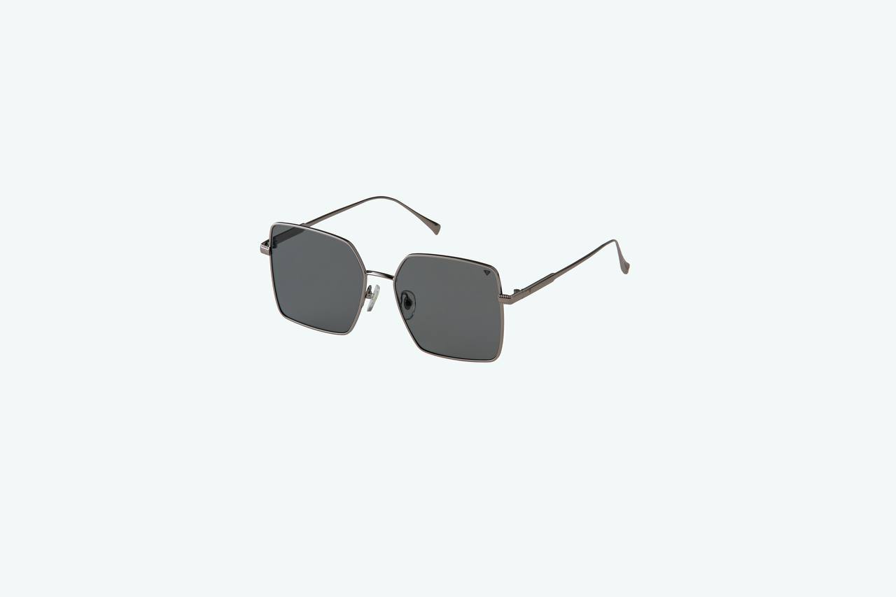 Женские солнцезащитные очки от BLANCIA выполнены из металла в серебристом цвете. Линзы выполнены в сером цвете. Линзы обладают 100% защитой от ультрафиолетового излучения.