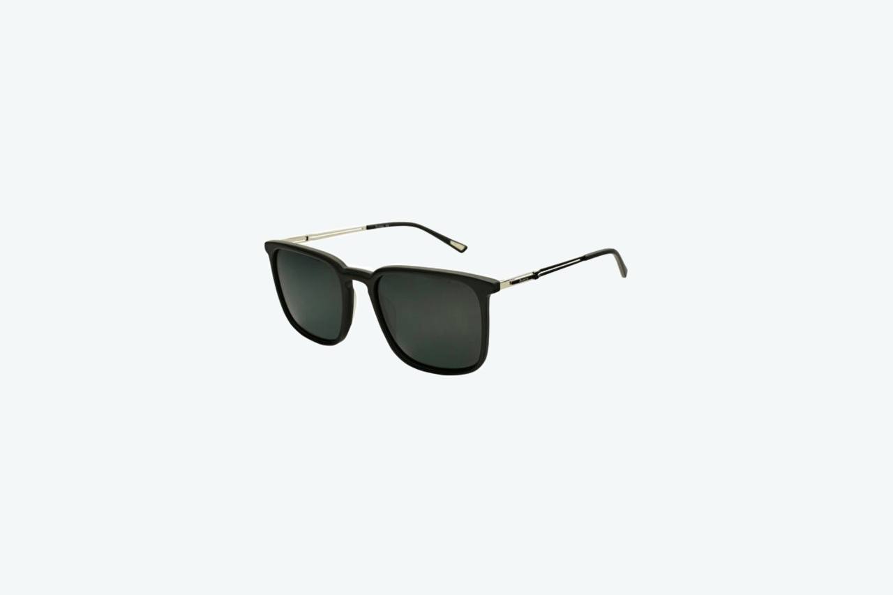 Мужские солнцезащитные очки от BLANCIA выполнены из пластика и металла в чёрном цвете. Линзы выполнены в сером цвете. Линзы обладают 100% защитой от ультрафиолетового излучения.