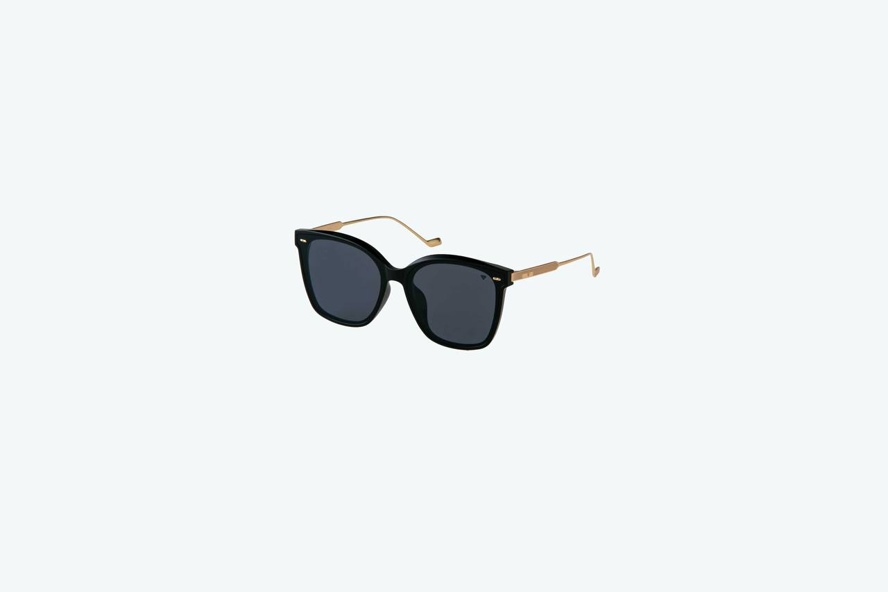 Женские солнцезащитные очки от BLANCIA выполнены из металла и ацетата в чёрном и золотом цвете. Линзы выполнены в сером цвете. Линзы обладают 100% защитой от ультрафиолетового излучения.