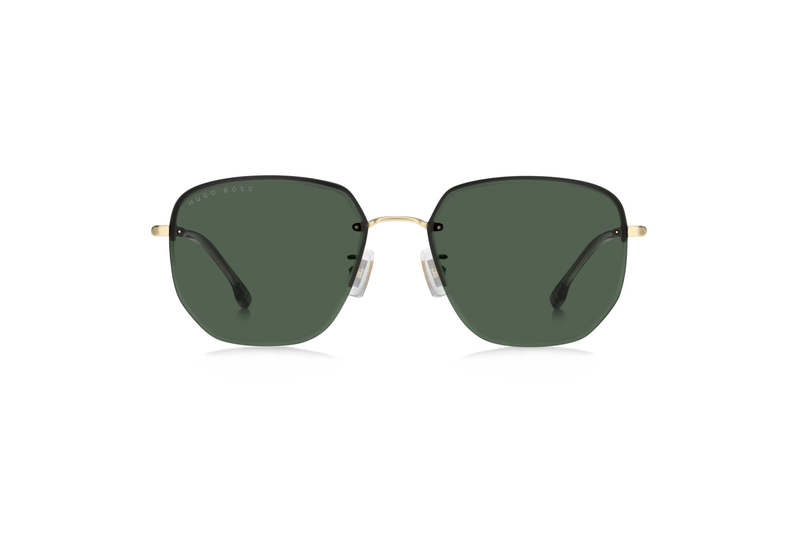 Мужские солнцезащитные очки геометрической формы выполнены в золотистом цвете и изготовлены из стойкого и гипоаллергенного металла. Зелёные линзы уменьшают интенсивность света, не влияя на контрастность и не искажая цвета.